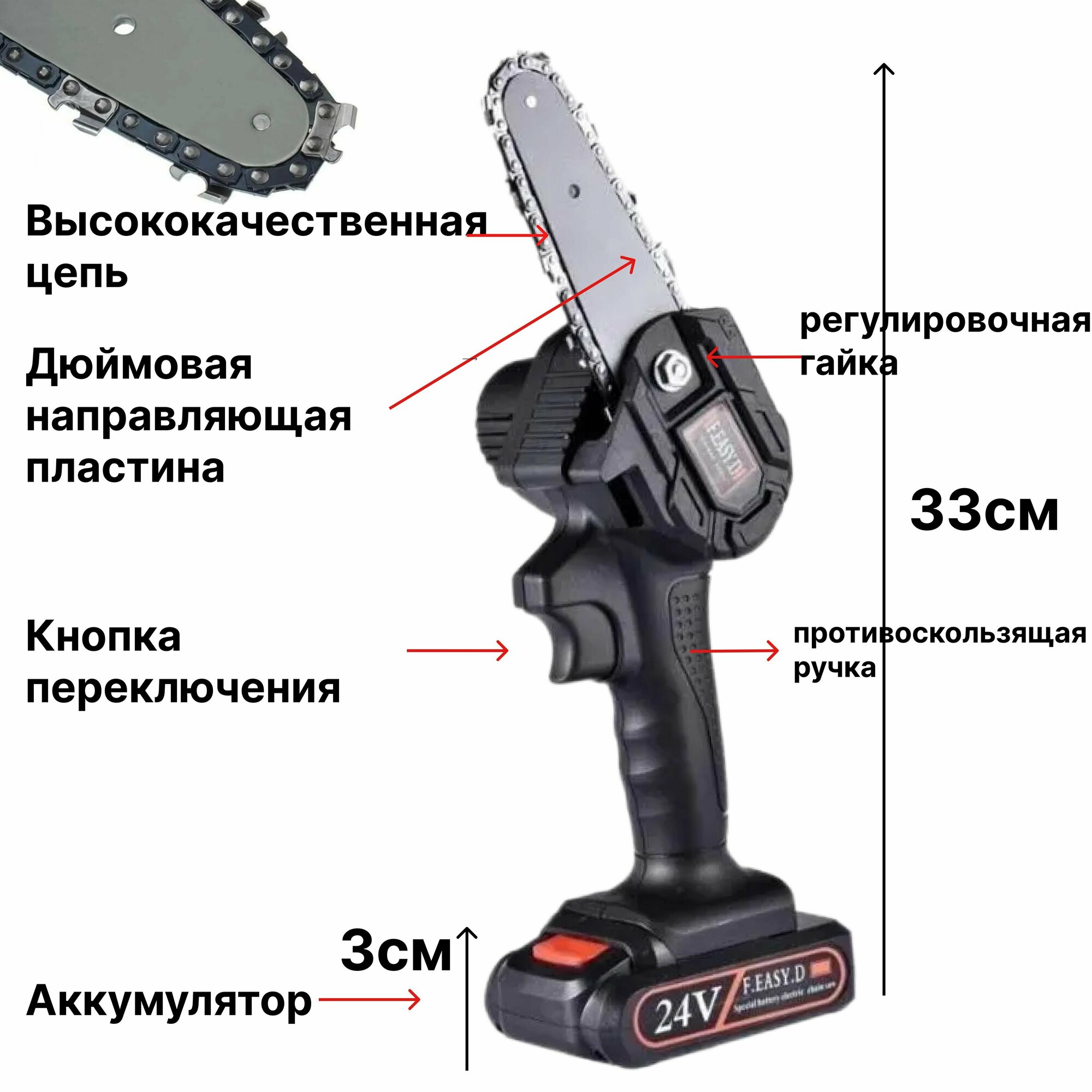 Мини-цепная пила с аккумулятором 24 В интересное: