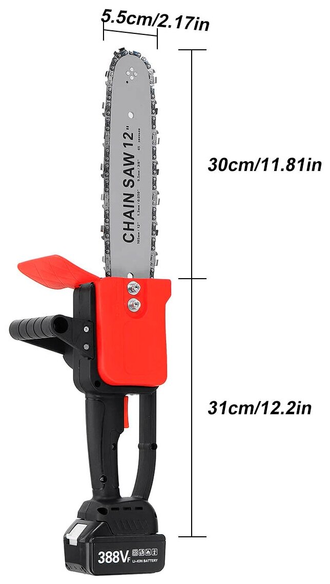 Мощная аккумуляторная электропила, 12 дюймов (30,5см), с мощным аккумулятором и встроенной масленкой + запасня цепь интересное:
