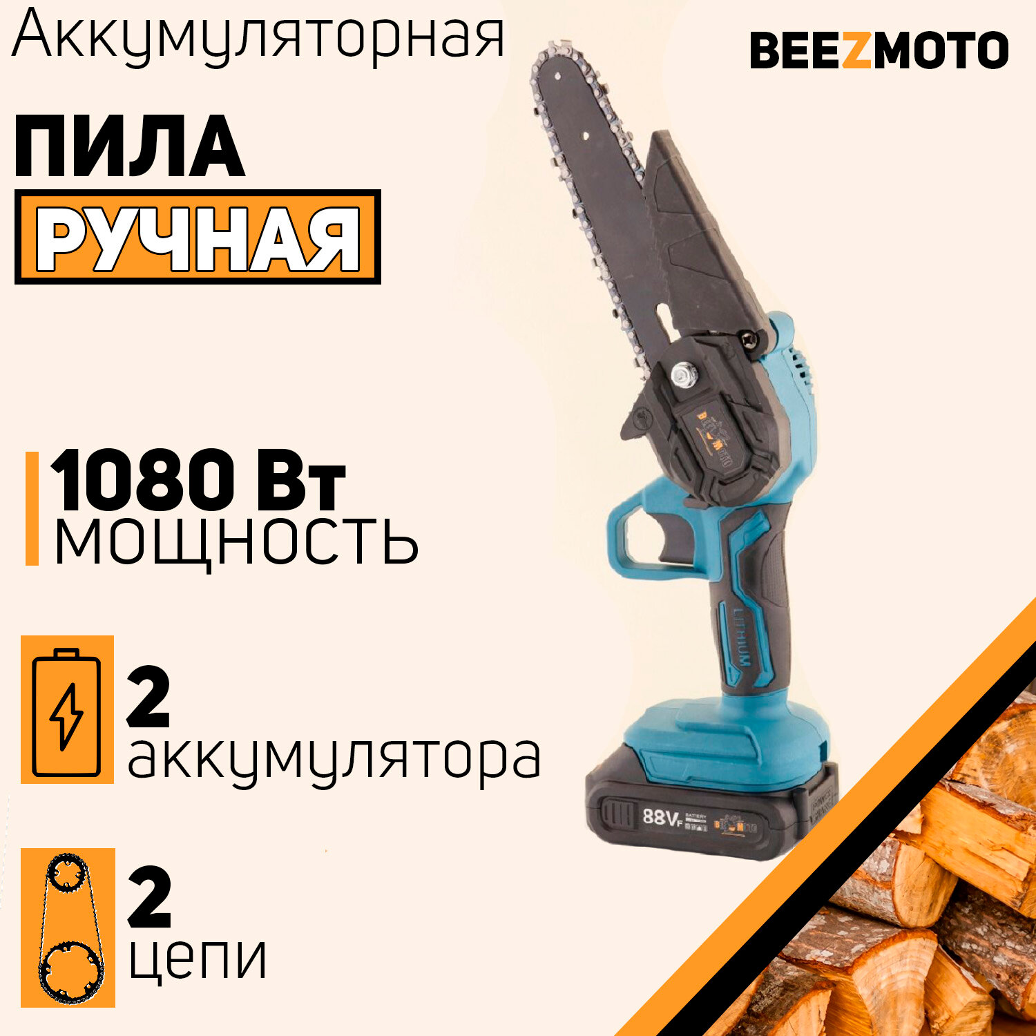 Аккумуляторная цепная пила 88Vf (6 дюймов, 1.5Ah, 2 акб(Li-ion), цепь 2шт, подсветка) "BEEZMOTO" интересное: