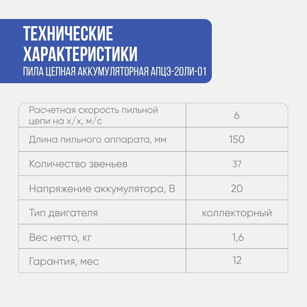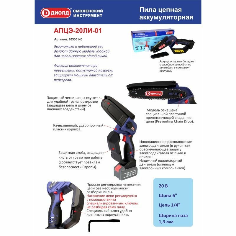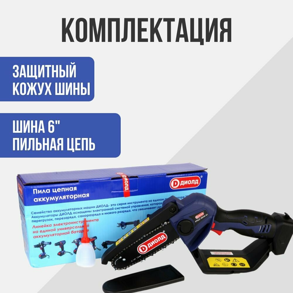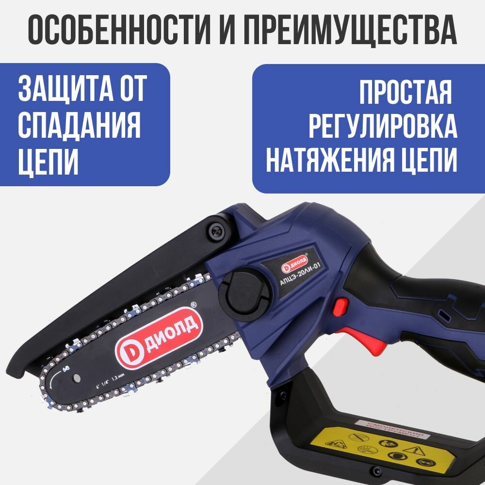Пила цепная аккумуляторная диолд АПЦЭ-20ЛИ-01, без ЗУ И АКБ, 150 мм, 6 м/с интересное: