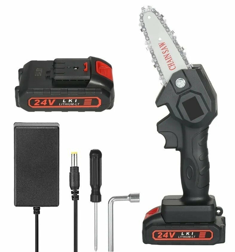 Портативная электропила цепная 550 Вт, 1500 мАч / Ручная Аккумуляторная 4-дюймовая Мини Пила