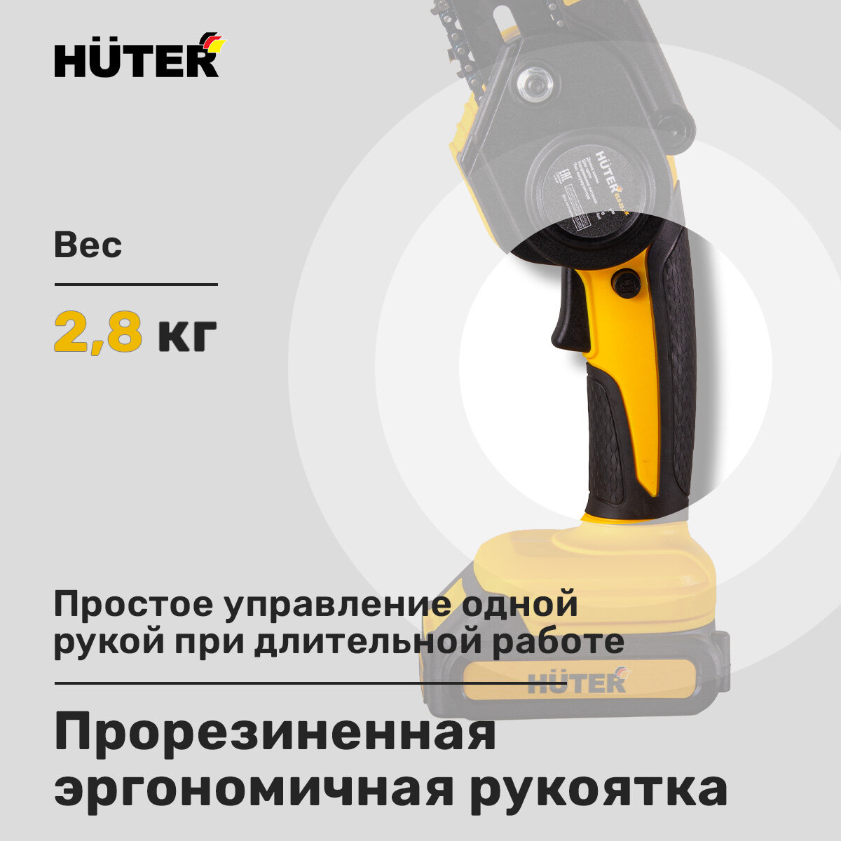 Электропила Huter ELS20Li2K - аккумуляторная мини-пила для распила дерева 2 акб в комплекте