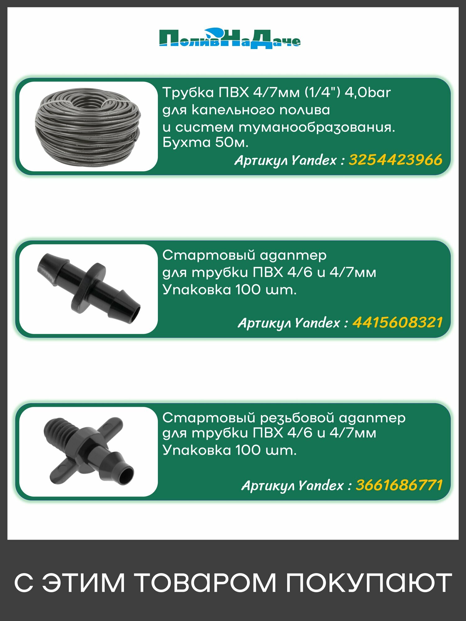 | Комплектация | Стартовый тройник (соединитель) для ПВХ трубки (1/4") 4/7мм |