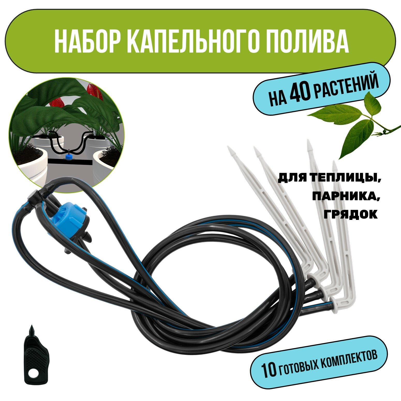 Набор капельного полива на 40 растений (10 готовых комплектов с Г-образными капельницами)