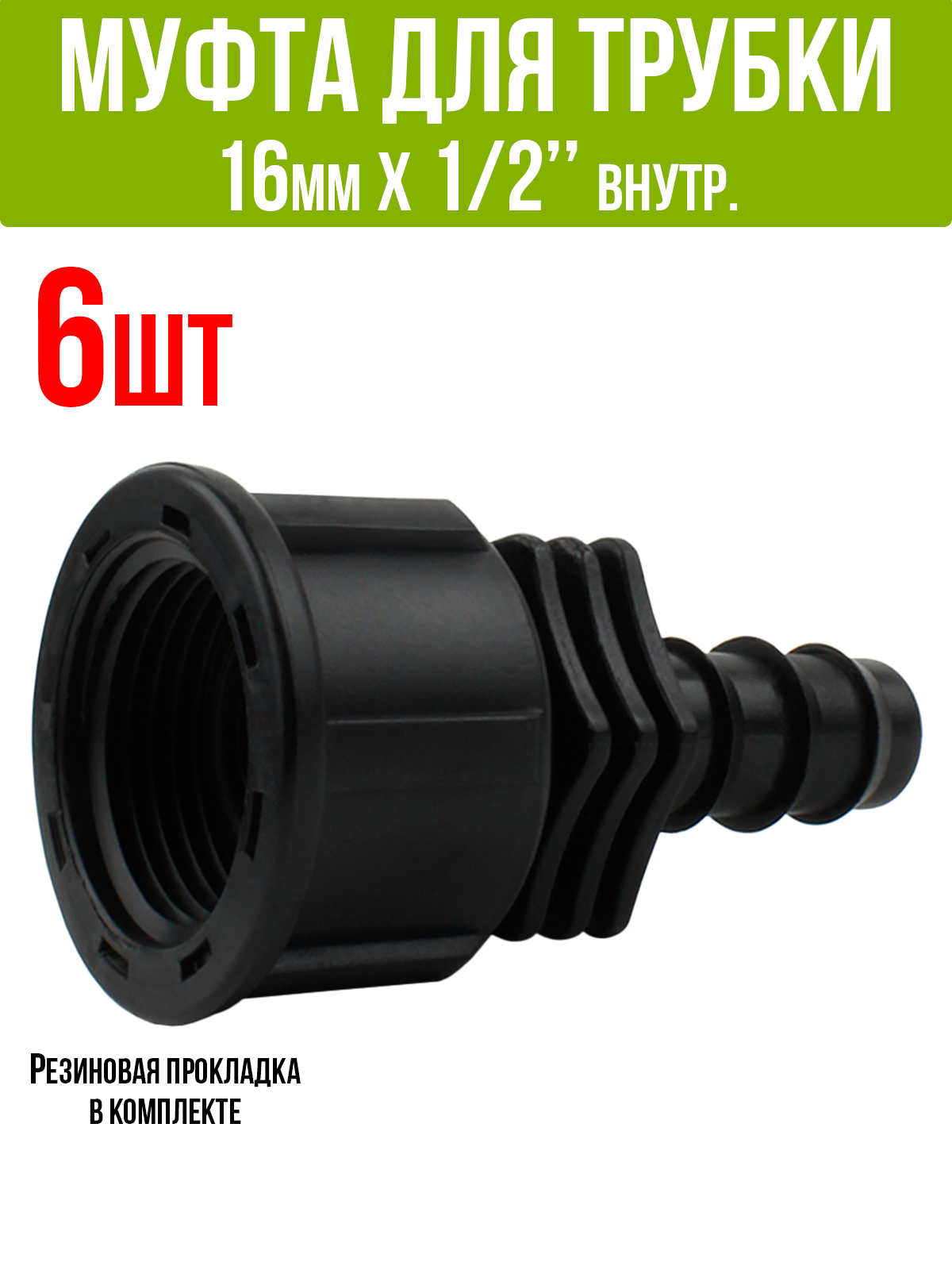 Муфта для капельной трубки 16 мм х 1/2" внутренняя (американка) - 6 штук