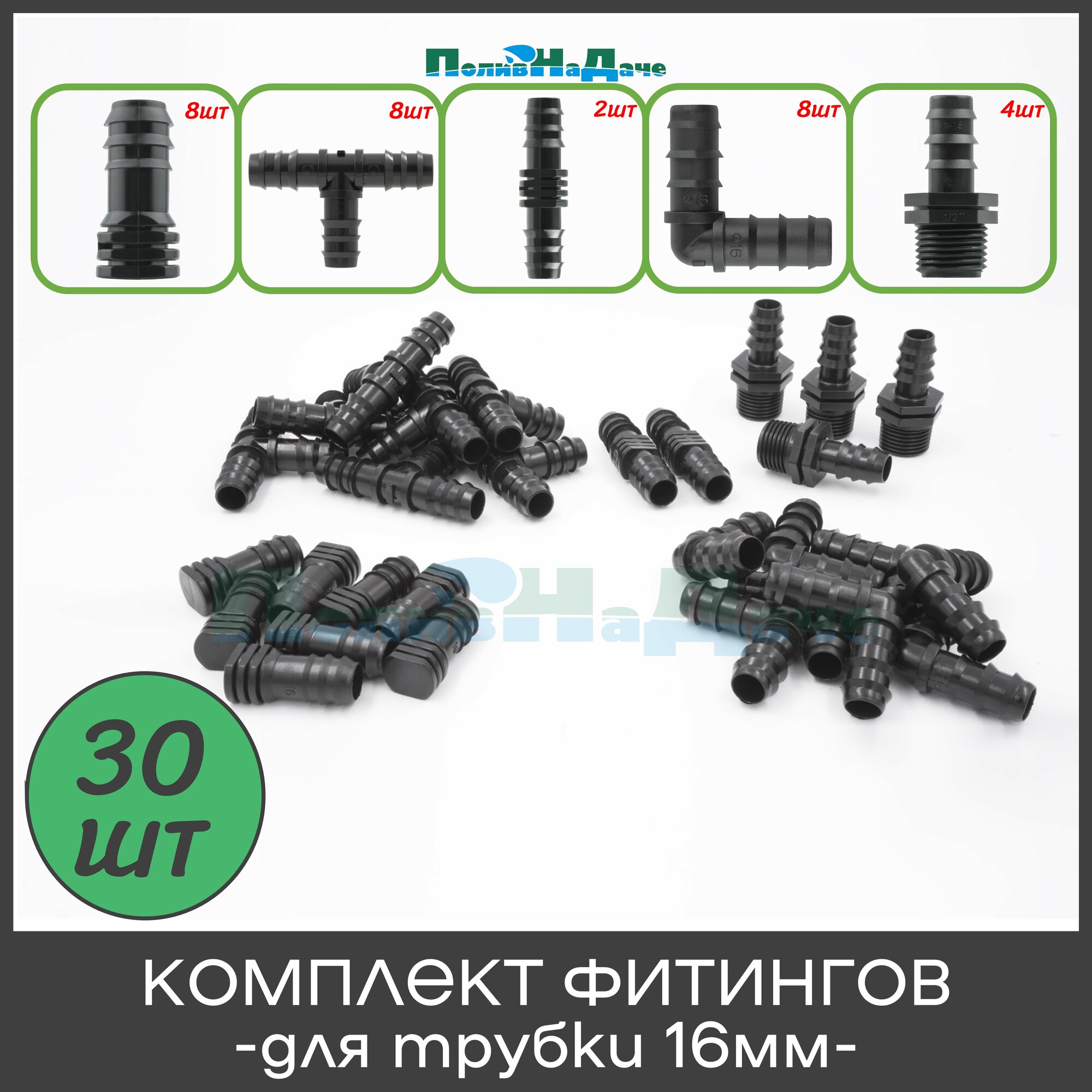 СохранитьКомплект фитингов для трубки 16мм. Набор включает в себя 30 предметов для систем капельного орошения. интересное: