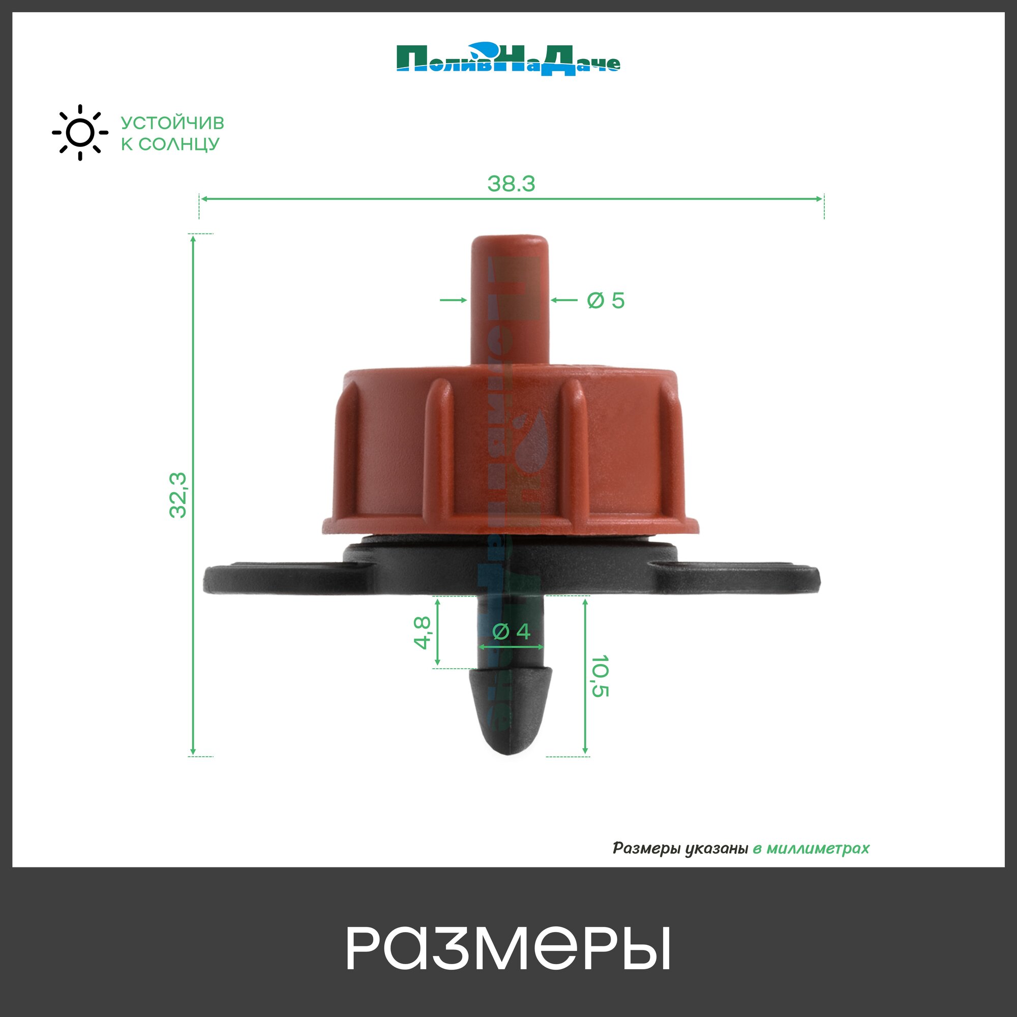 СохранитьКапельница компенсированная с лабиринтом разборная, 1/4", 0,7-3,2 bar, коричневая, 8л/ч (TOD0108) - 100 шт интересное: