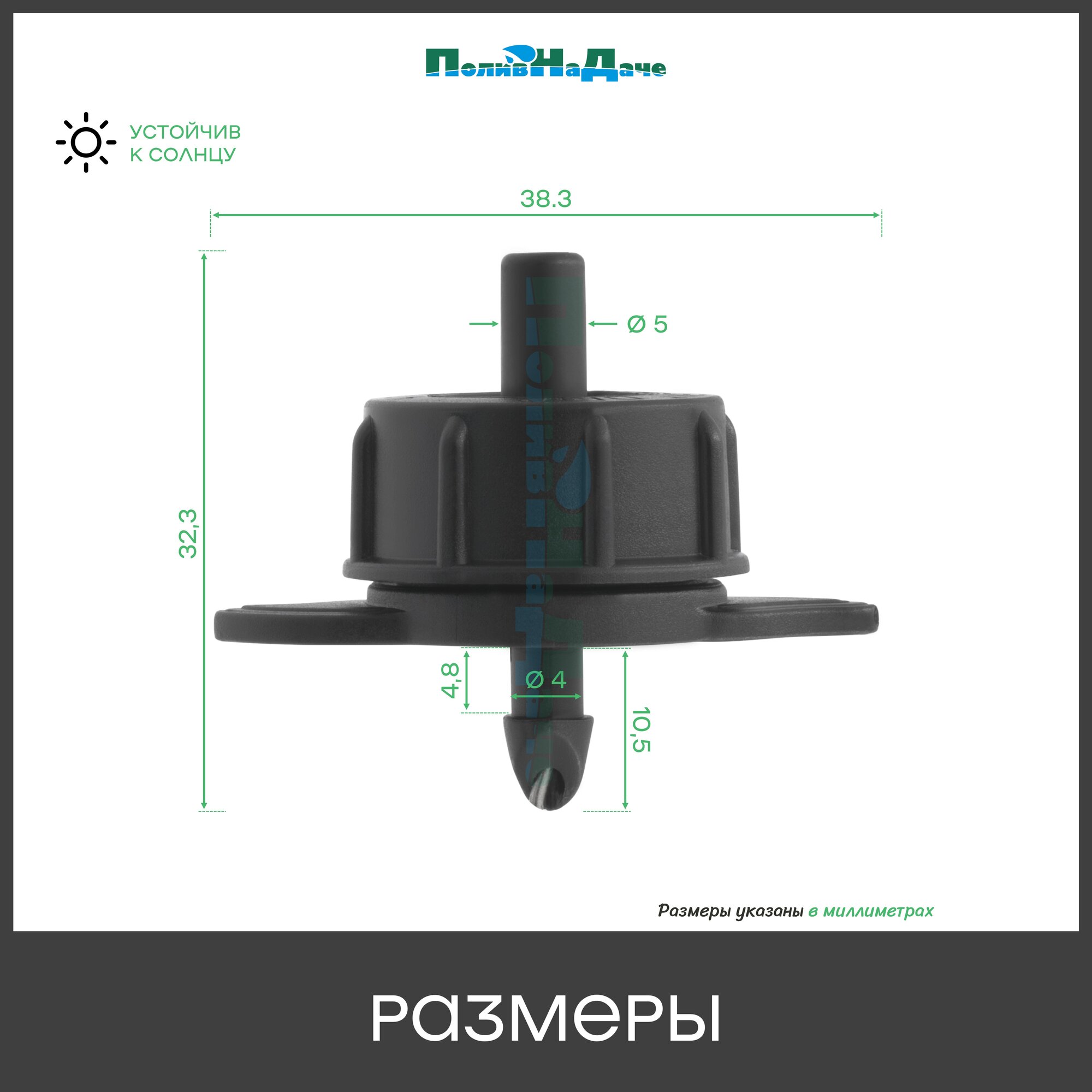 СохранитьКапельница компенсированная с лабиринтом разборная, 1/4", 0,7-3,2 bar, черная, 4л/ч (TOD0104) - 40 шт интересное: