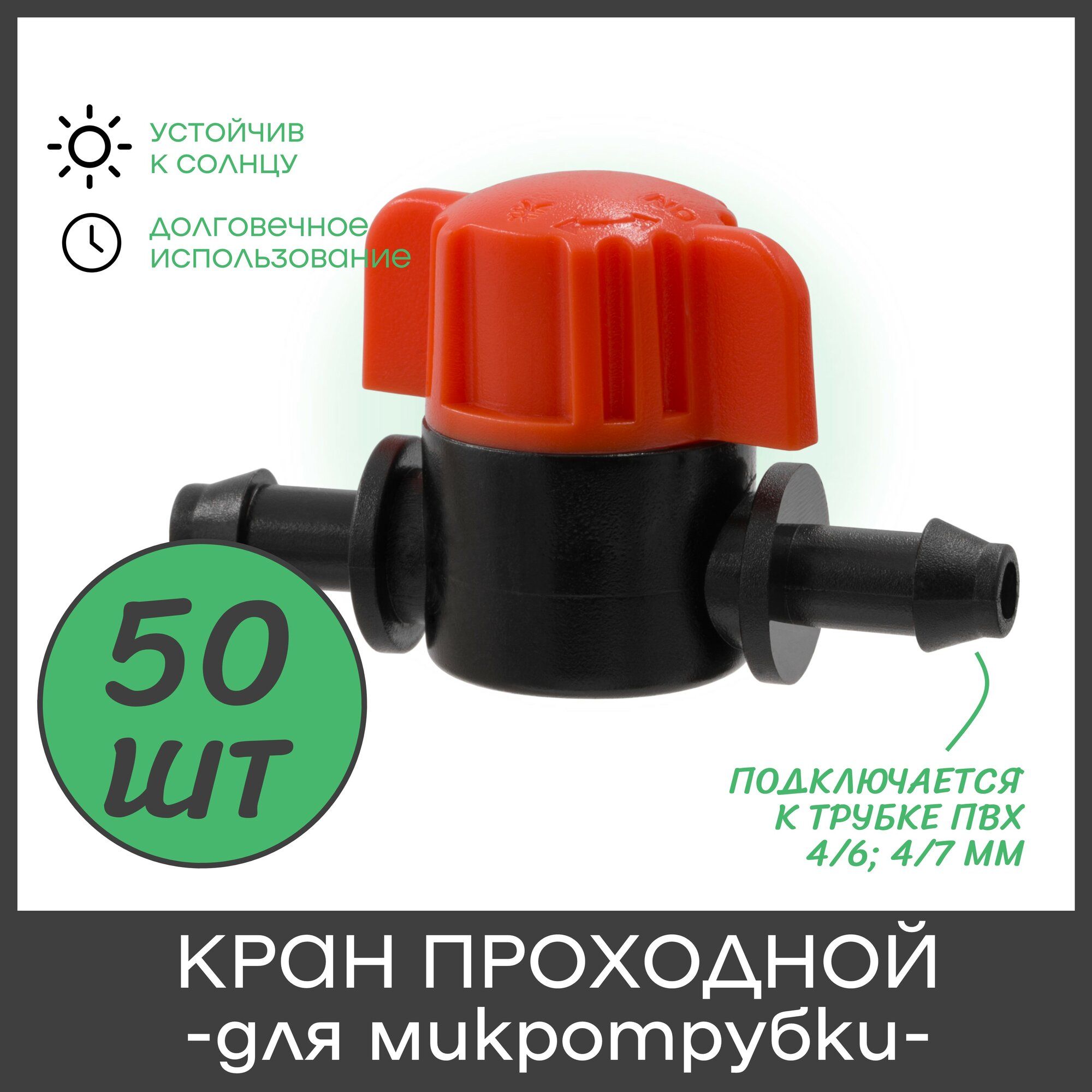 Кран проходной для микротрубки ПВХ 4/6мм или 4/7мм (1/4") - 50 штук