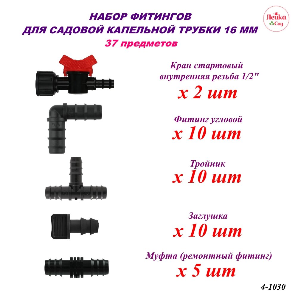 Набор фитингов Лейка Сад для капельной трубки 16 мм. 37 предметов для капельного полива интересное: