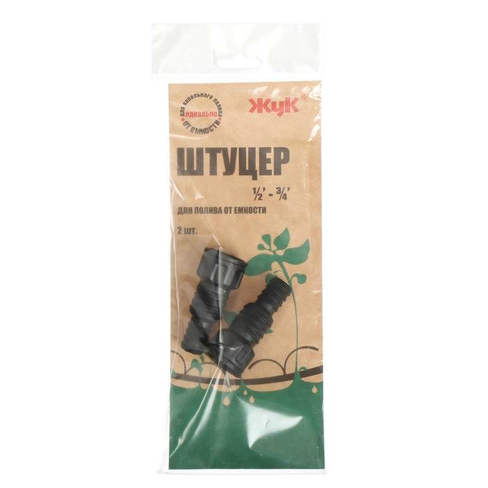 Жук Штуцер, внутренняя резьба 1/2", для шланга 1/2" (12 мм) – 3/4" (19 мм), набор 2 шт., пластик, «Жук» интересное: