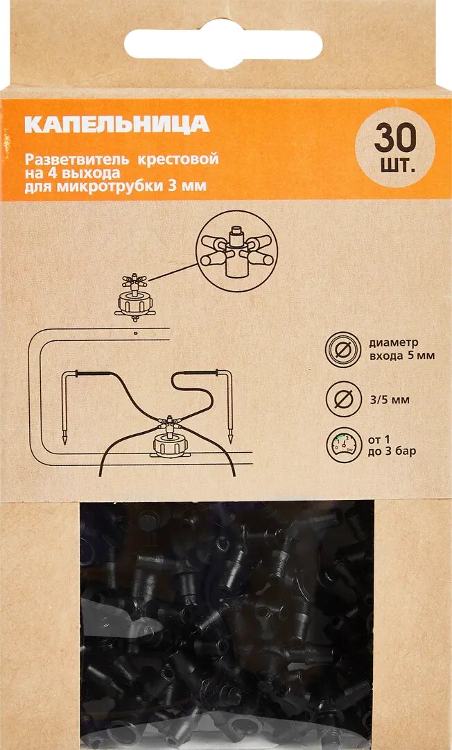 Разветвитель крестовой на 4 выхода для микротрубки Boutte 3-4 мм 30 шт интересное: