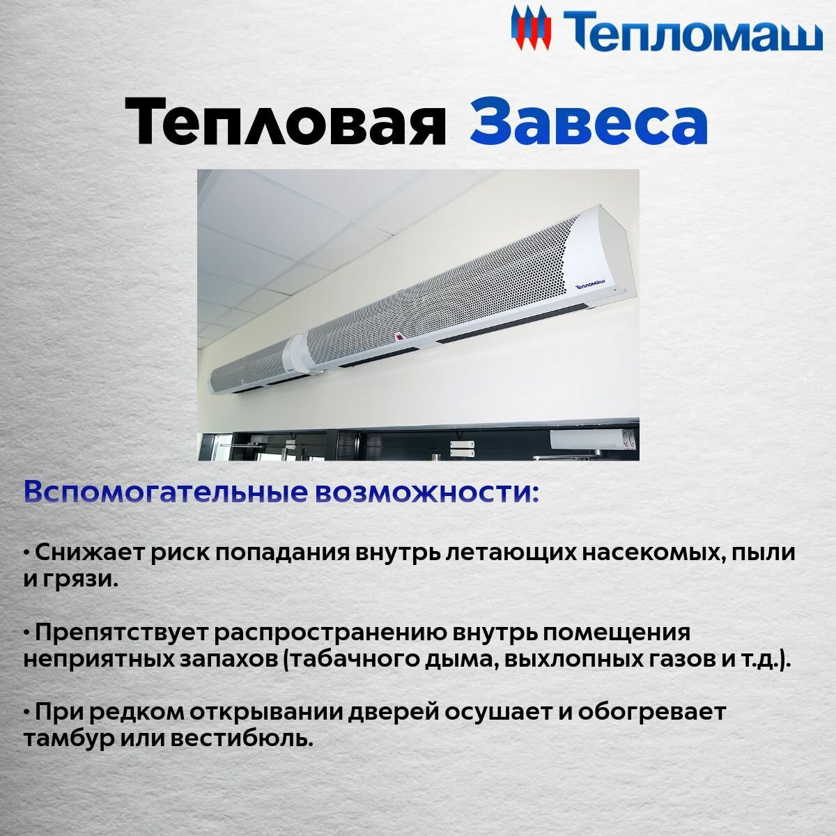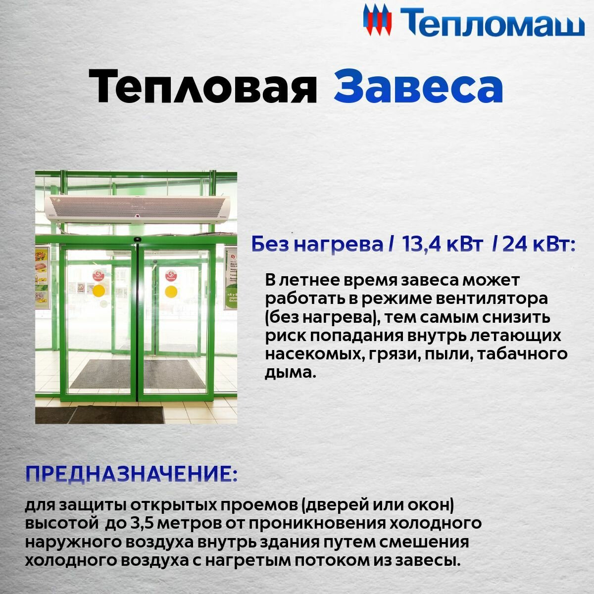 | Минимальная высота установки тепловой завесы | 1 м |