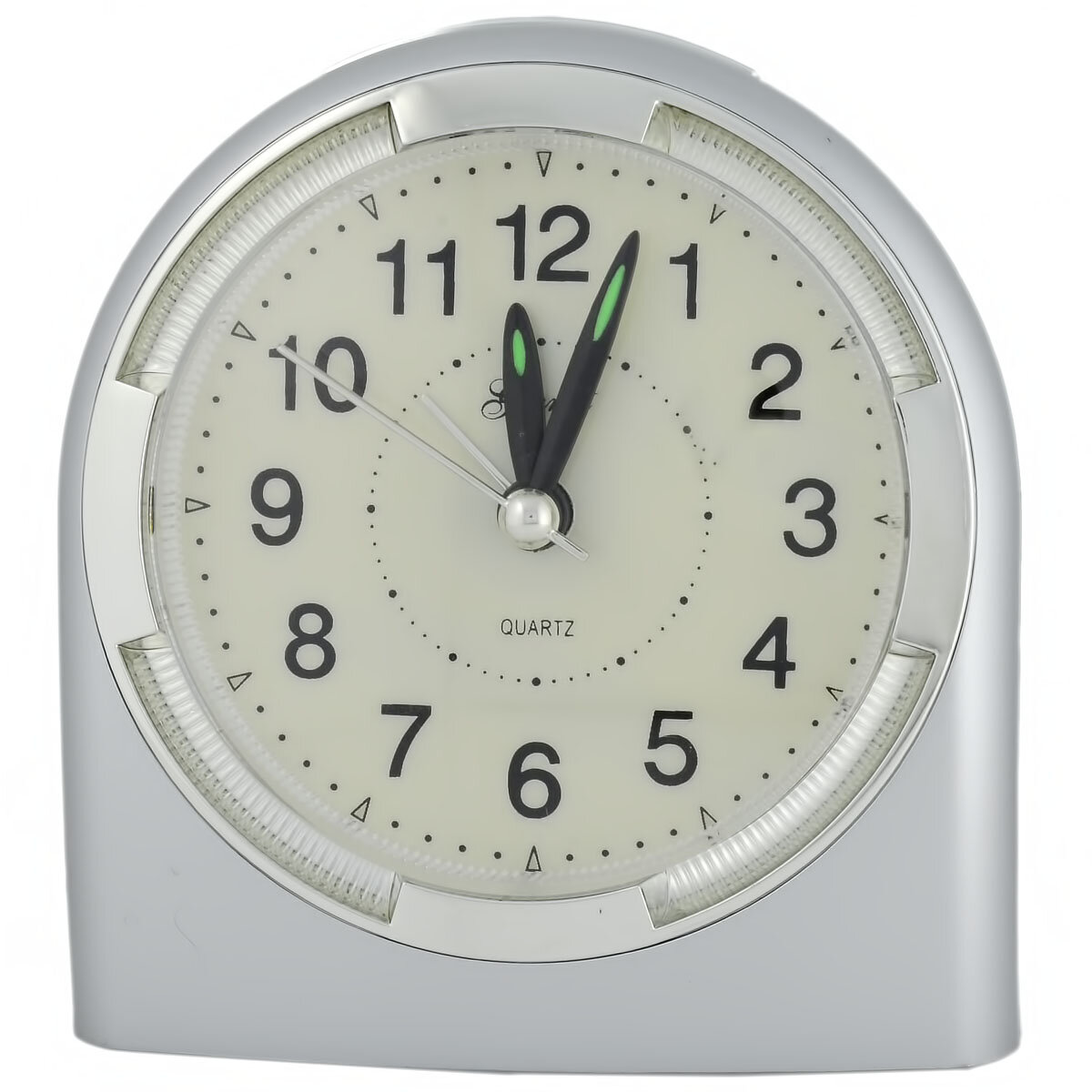Купить Будильник кварцевый с подсветкой и повтором сигнала гранат PT101-2 цвет серебро, размер 9,5х10,5 см