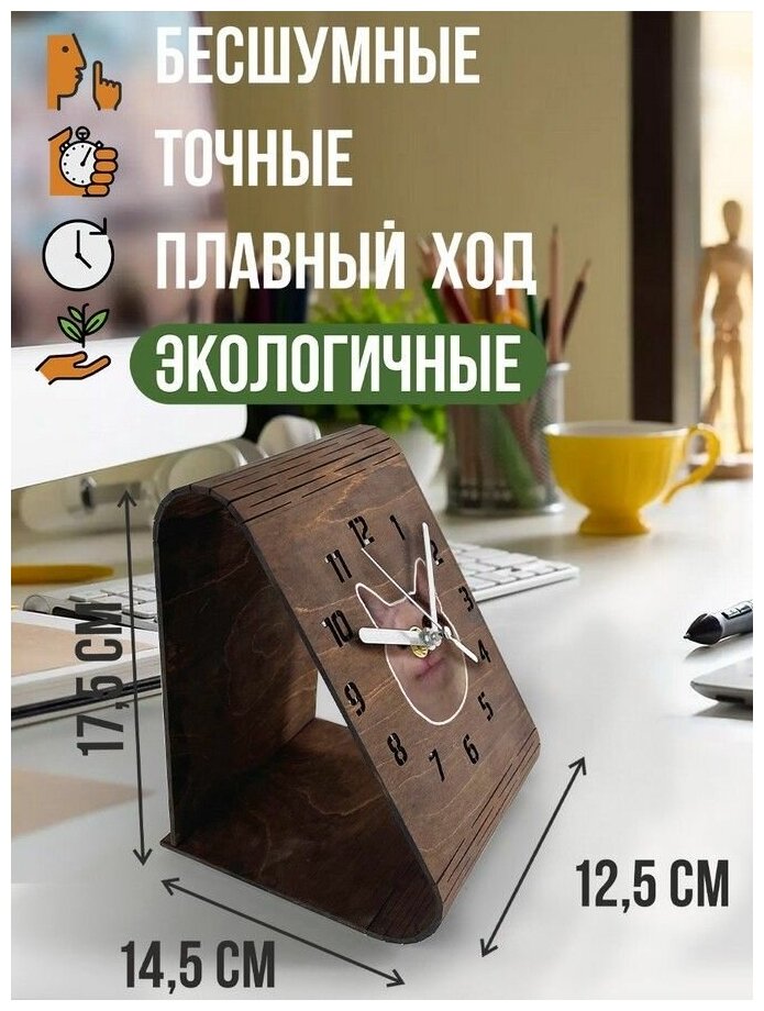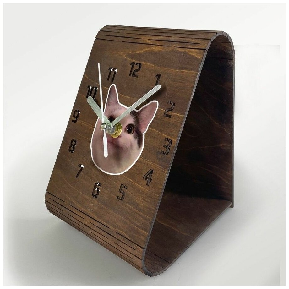 Настольные часы из дерева, цвет венге, яркий рисунок мемы коты - 43 интересное: