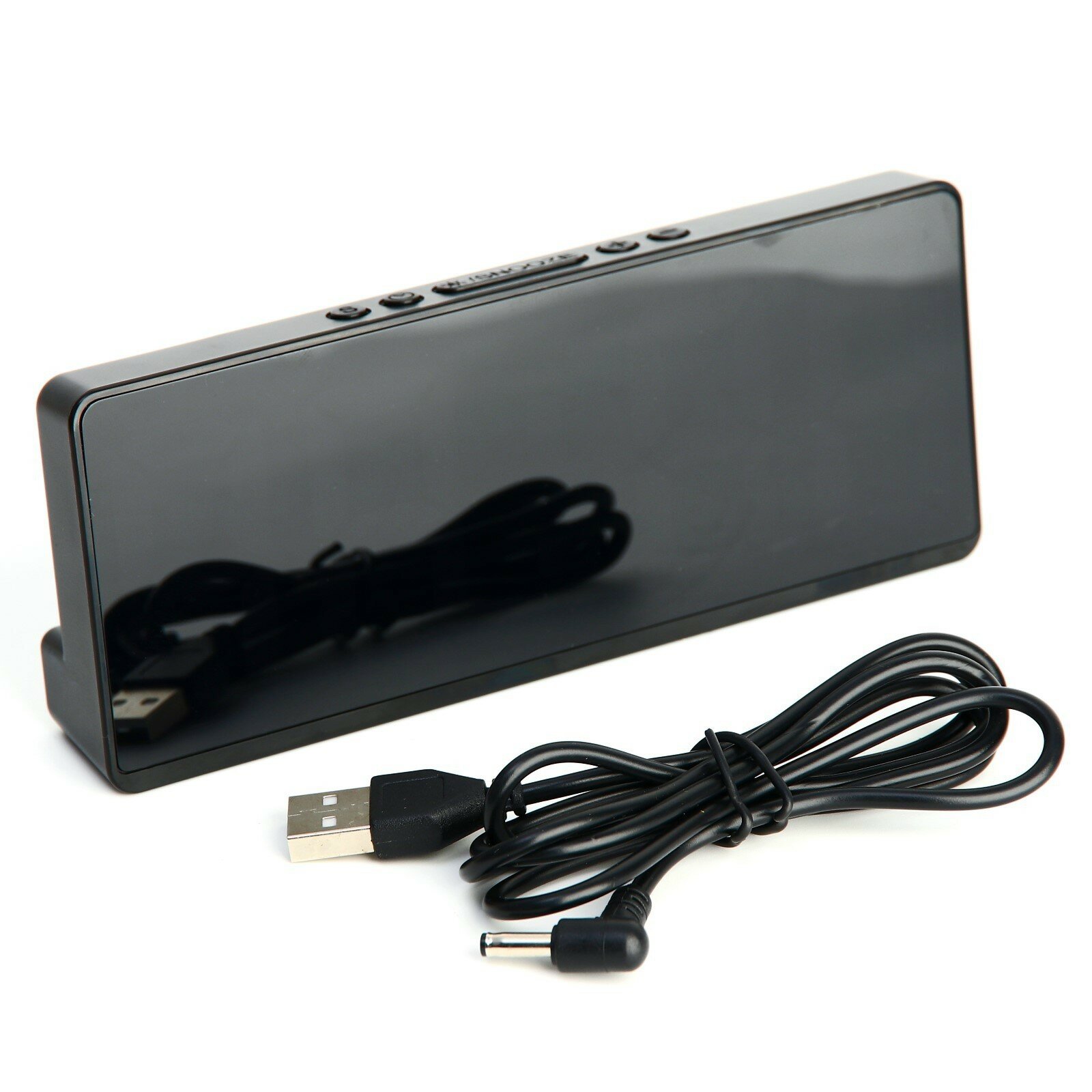 Часы настольные электронные: будильник, термометр, календарь, USB, 15х6.3 см, синие цифры интересное: