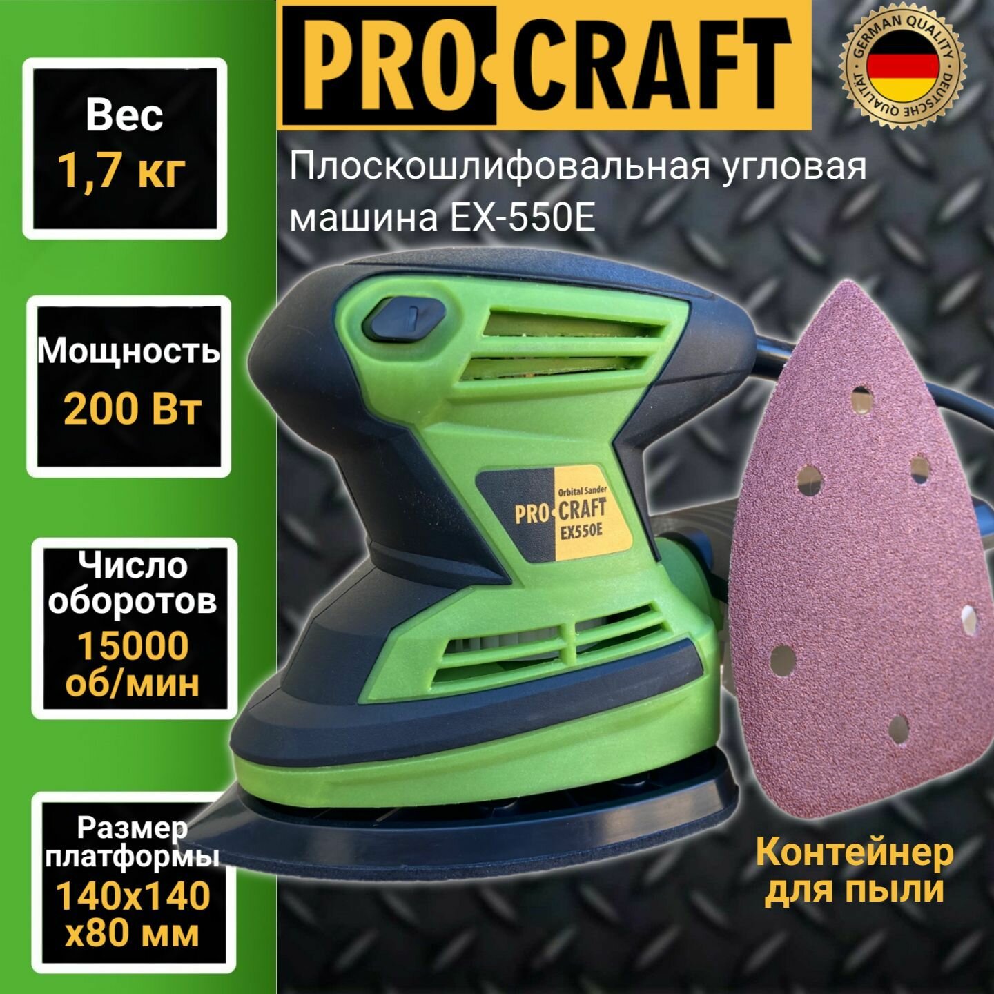 Купить Плоскошлифовальная угловая машина Procraft EX-550E, платформа 140х140x80мм, 15000об/мин, 200Вт