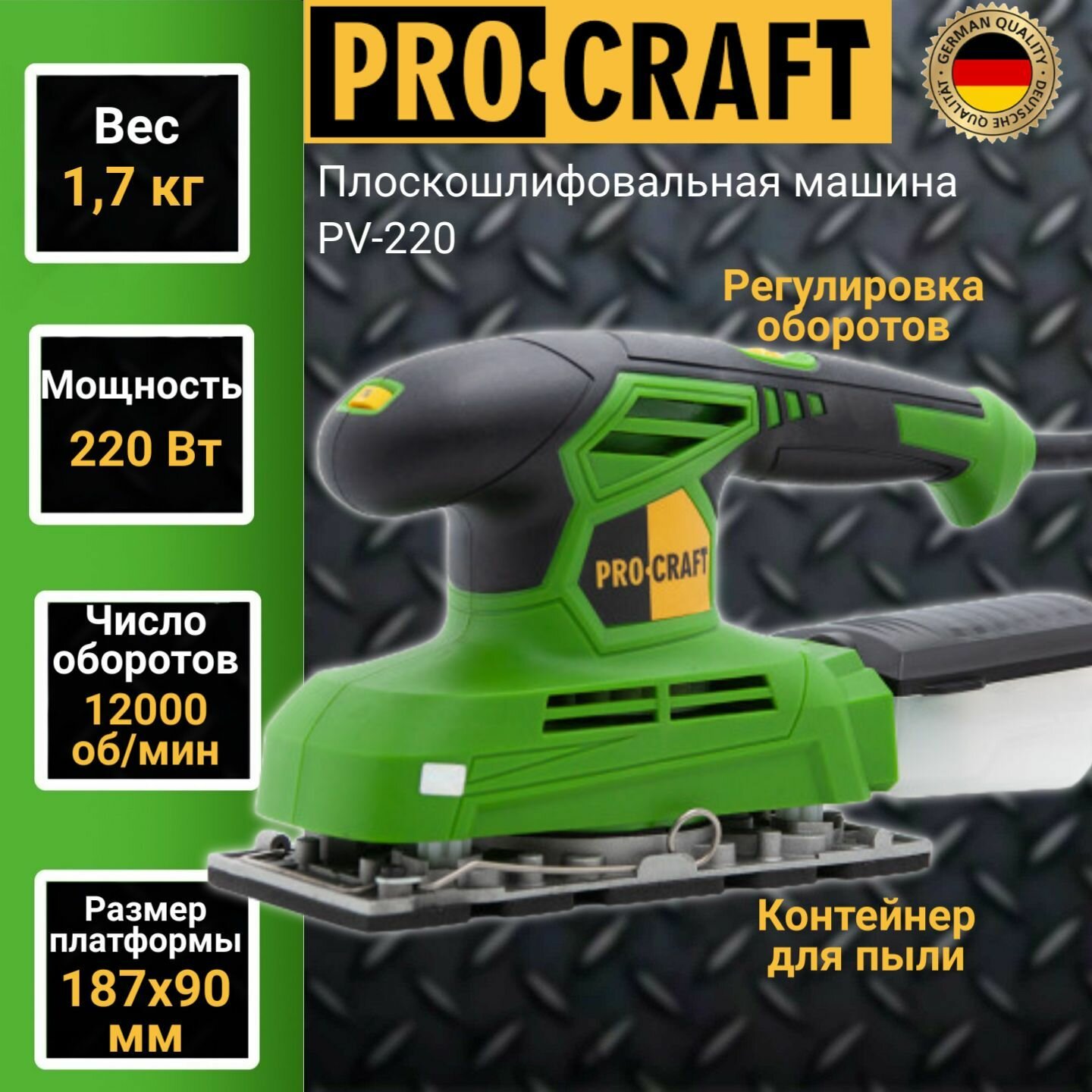 Купить Плоскошлифовальная машина Procraft PV-220, платформа 187х90мм, 12000об/мин, 220Вт