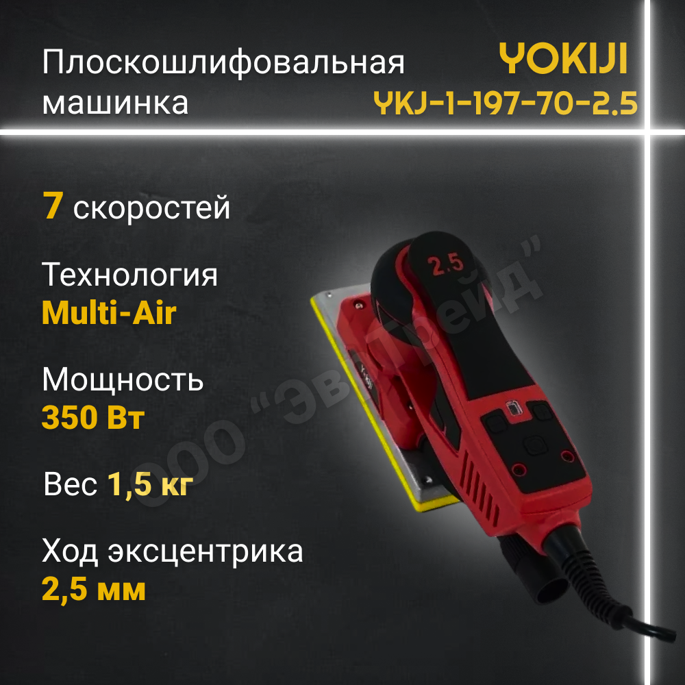 YOKIJI плоскошлифовальная машинка ручная 220V/50Hz, эксцентрик 2,5 мм YKJ-1-197-70-2.5