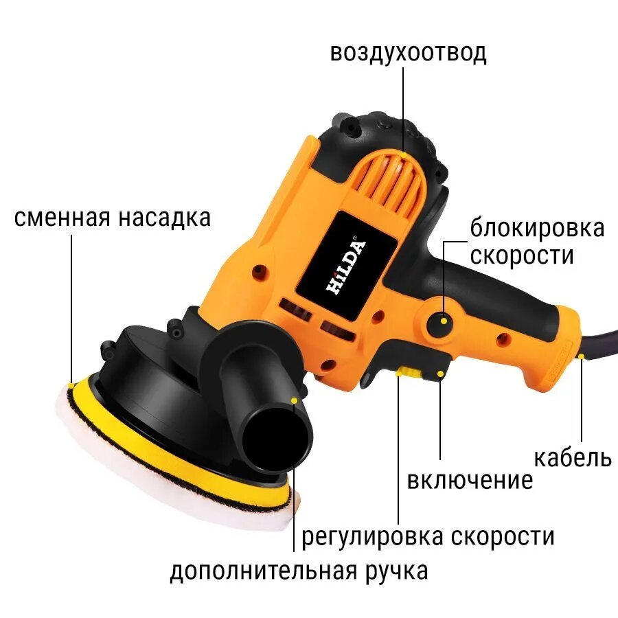 Полировальная машина HiLDA DWE-6401 с набором насадок интересное: