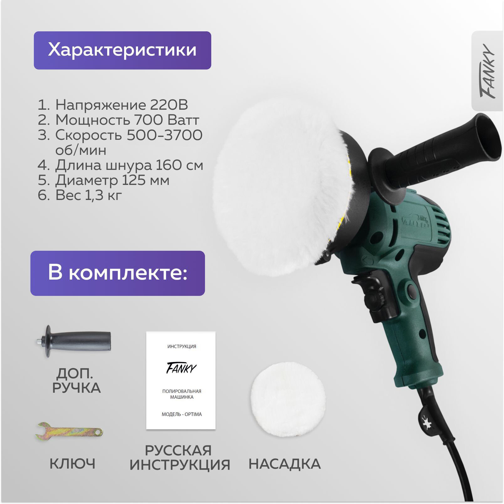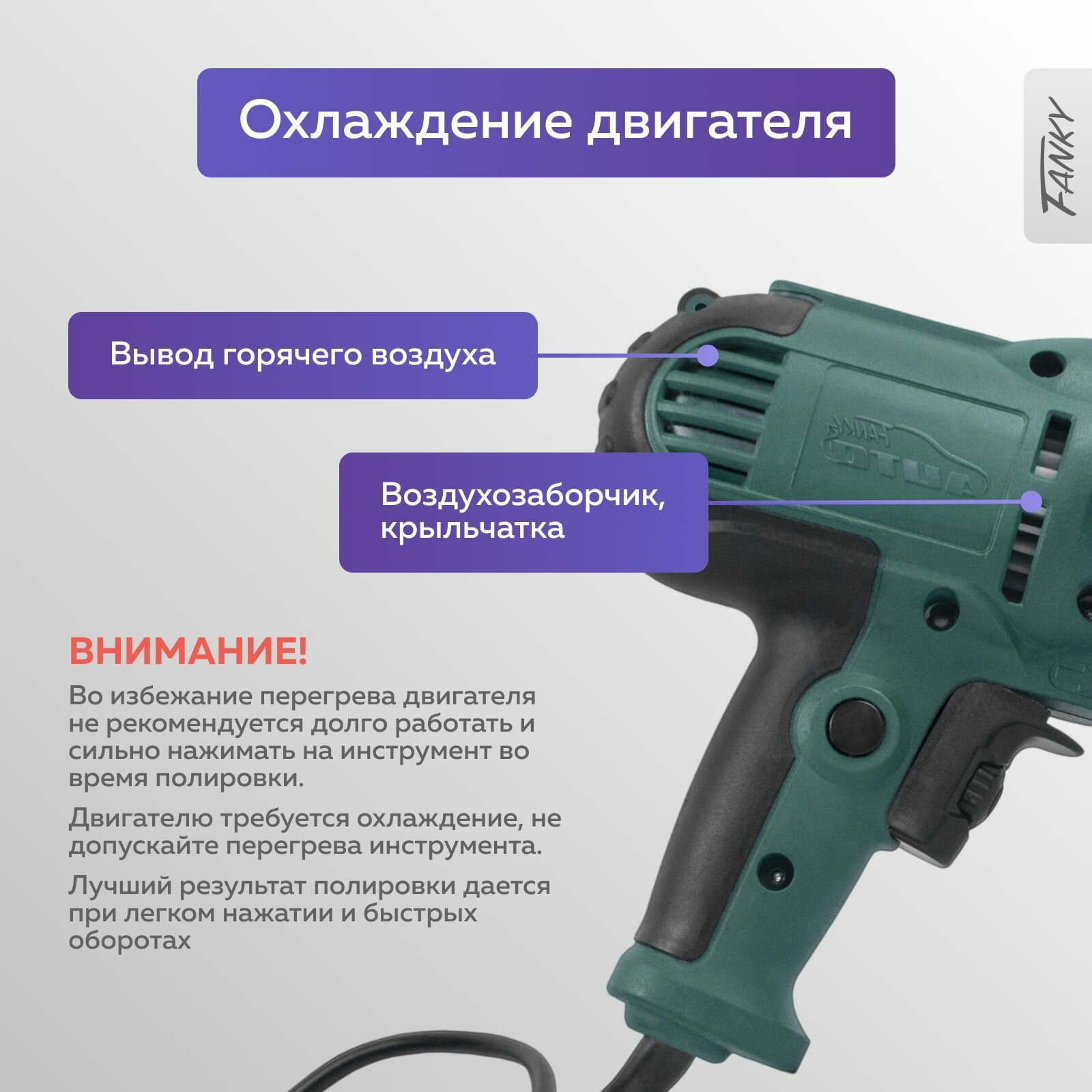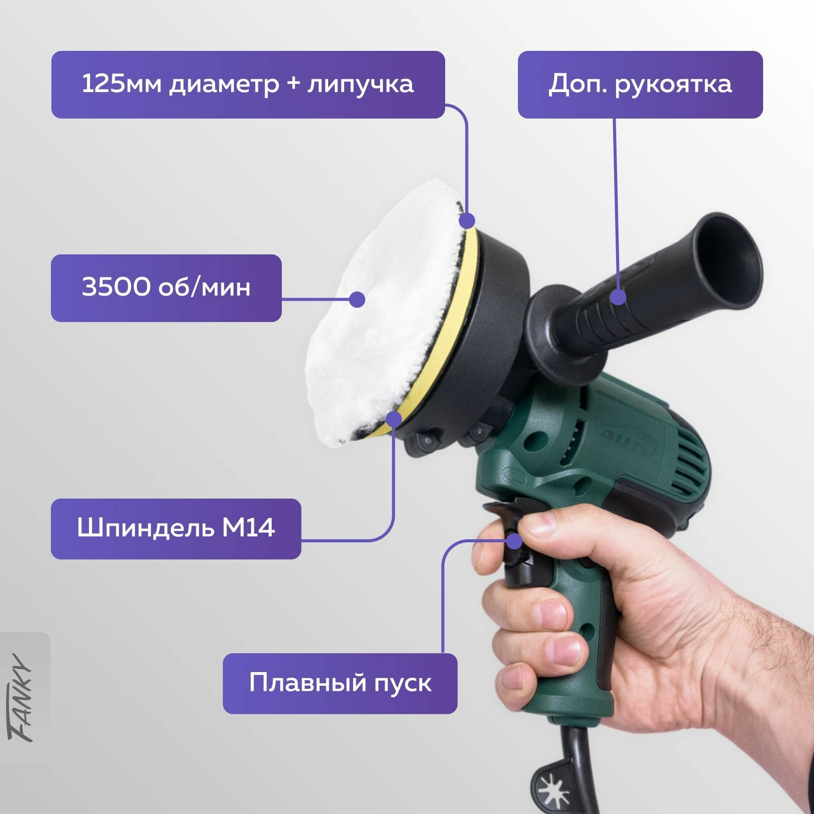 Полировальная машина Fanky для автомобиля и детейлинга - шлифмашина сетевая с регулировкой оборотов 220 В 700 Ватт интересное: