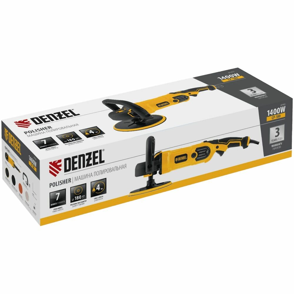 Полировальная шлифмашина Denzel Cp-180, 1400 Вт, 180 мм, 0-3000 об/мин 27701 .