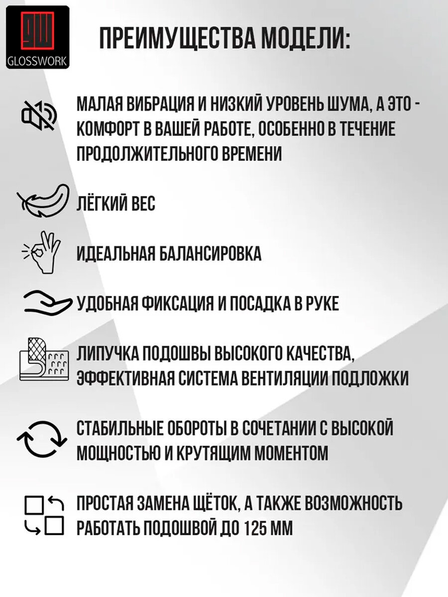 Glosswork RO Polisher Полировальная машинка ротационная, диаметр подошвы 125 мм интересное: