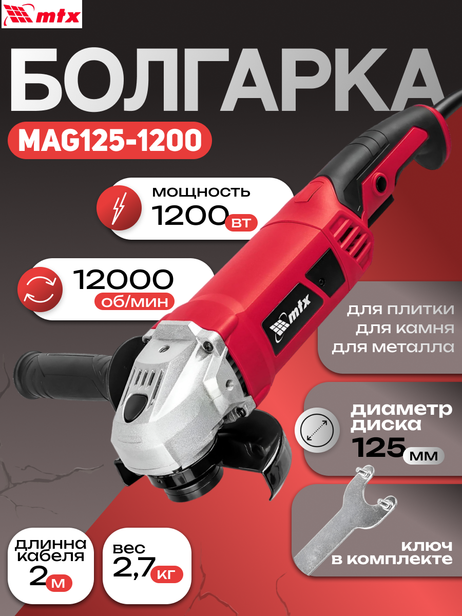 Машина шлифовальная угловая MTX MAG125-1200 1200 Вт, 125 мм, 12000 об/мин 26982 интересное: