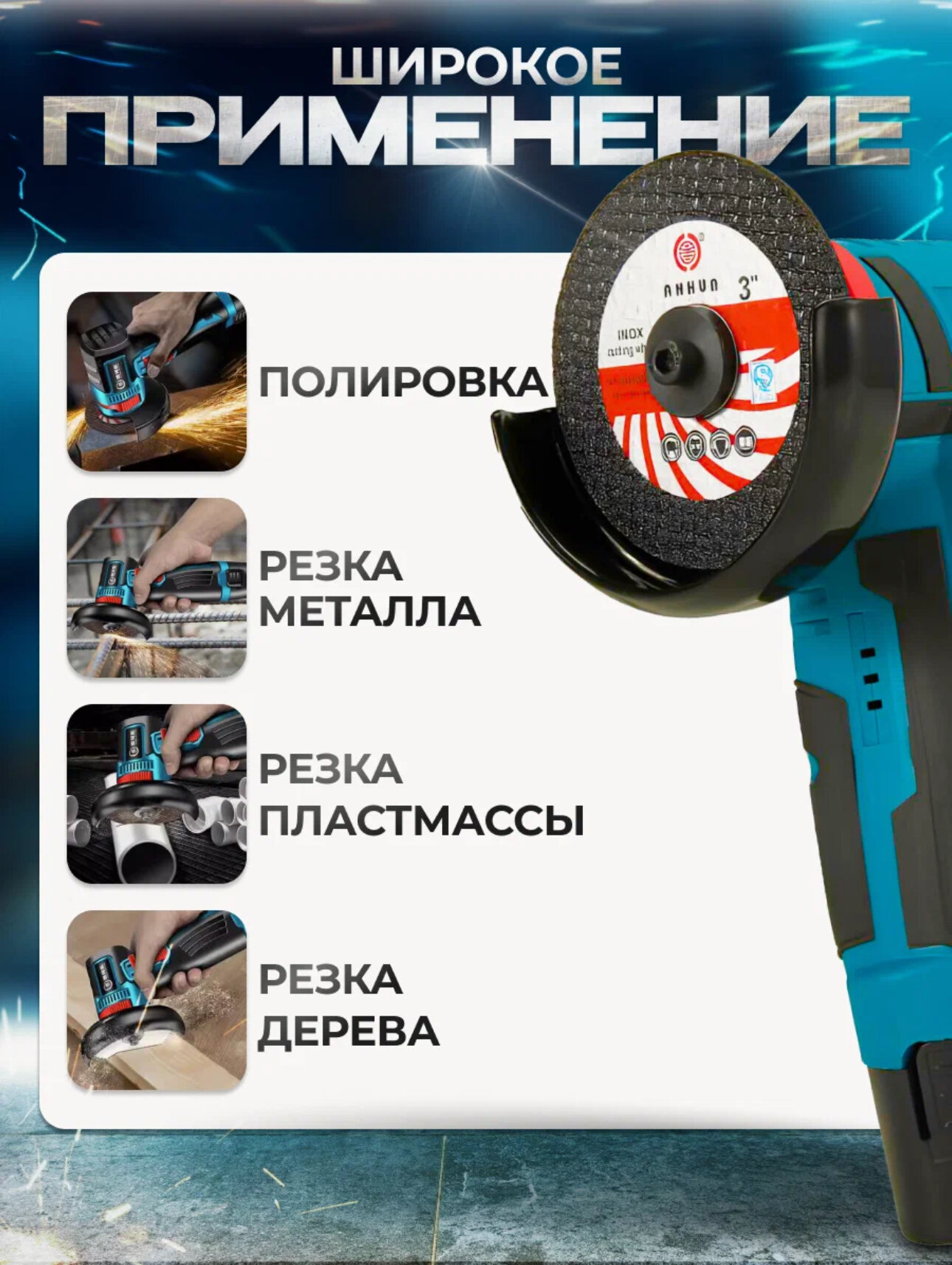 | Дополнительная информация | аккумуляторная болгарка мини, ушм, болгарка на аккумуляторе, мини ушм, шлифовальная машинка |