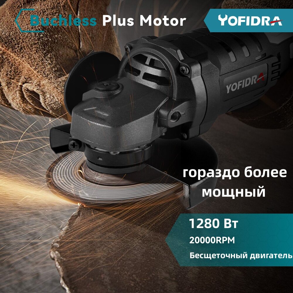 Угловая шлифовальная бесщеточная машина Yofidra 18В с двумя аккумуляторами интересное: