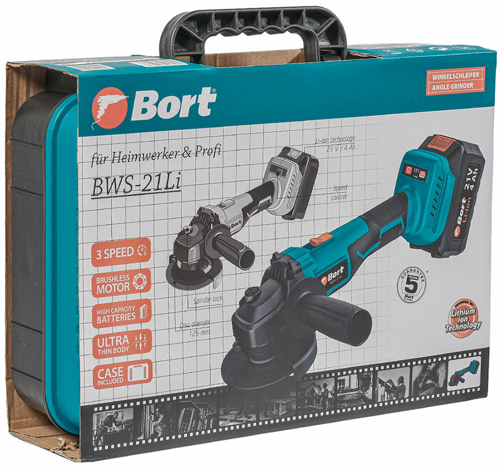 Bort BWS-21Li Машина шлифовальная угловая аккумуляторная (93413571) .