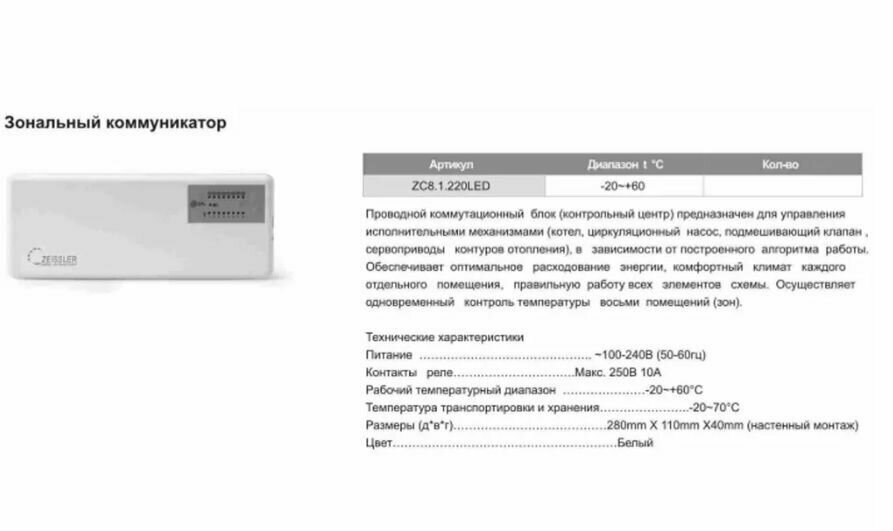 Зональный коммуникатор сервоприводов и термостатов - 8 каналов TIM ZC8.1.220LED2 интересное: