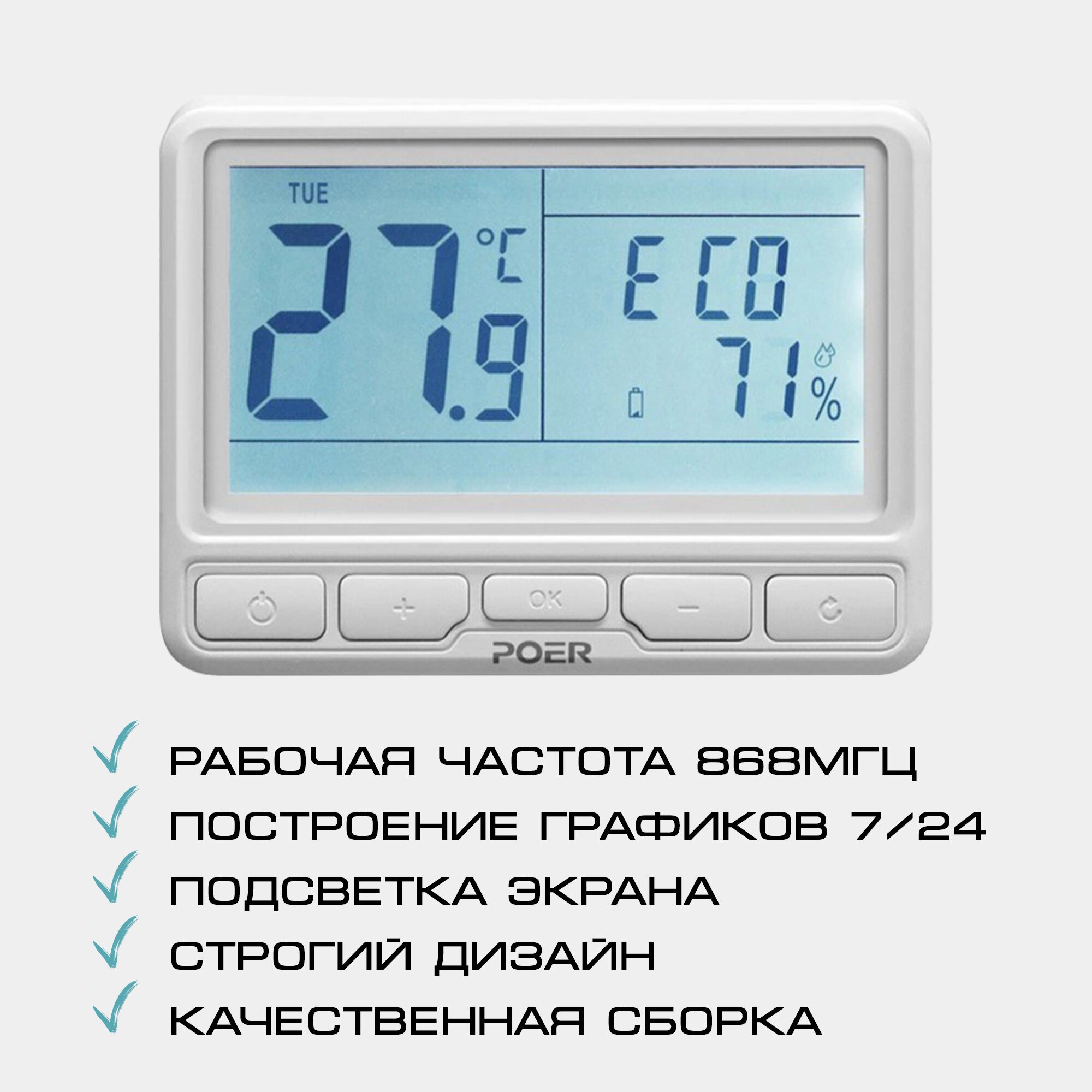 | Дополнительная информация | Данный терморегулятор POER имеет возможность подключения второго ЖК экрана с термодатчиком для управления вторым контуром отопления. Так же есть возможность подключения Wi-Fi шлюза для удаленного контроля и управления через мобильное приложение. |