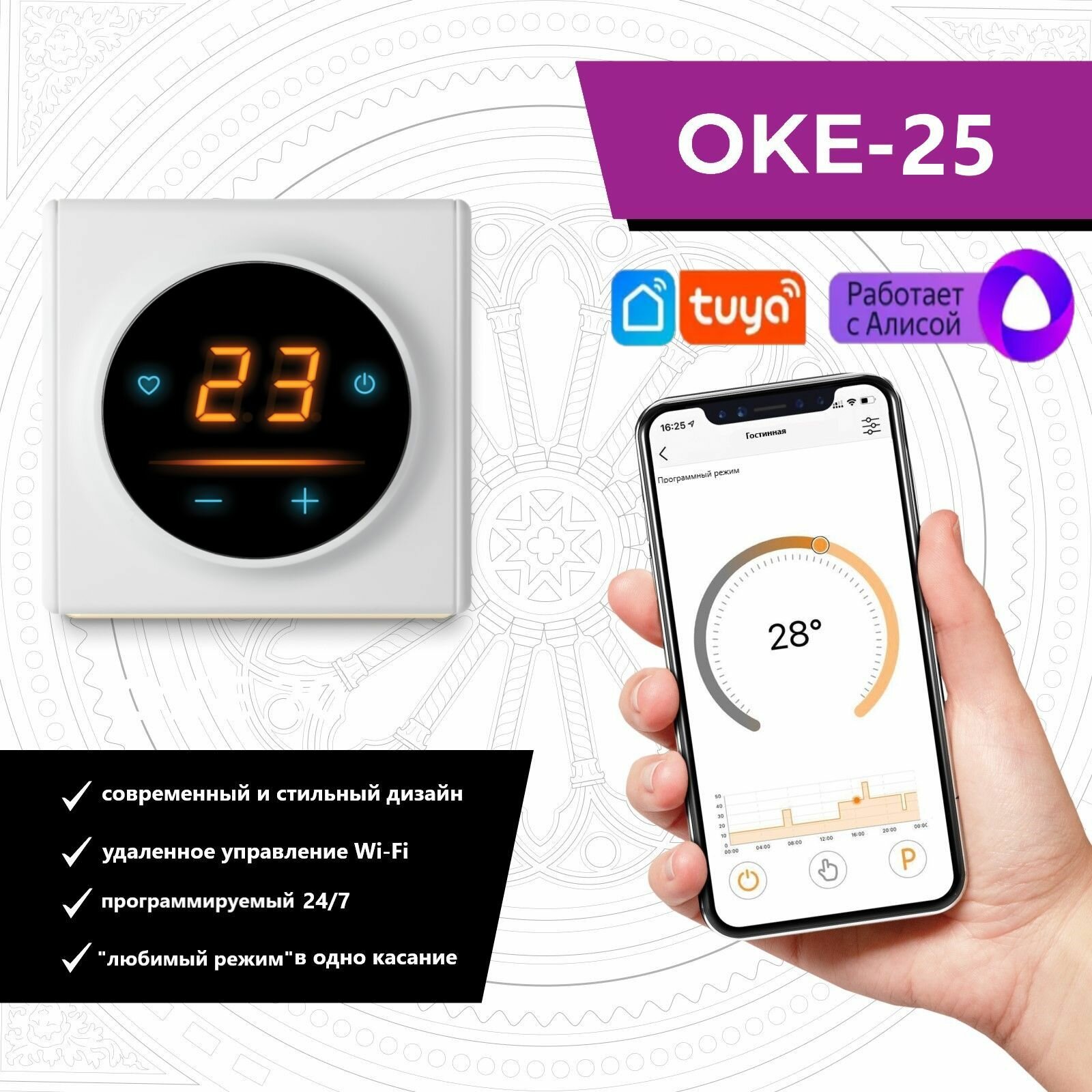 Терморегулятор/термостат для теплого пола OneKeyElectro c WiFi ОКЕ-25 в белой рамке интересное: