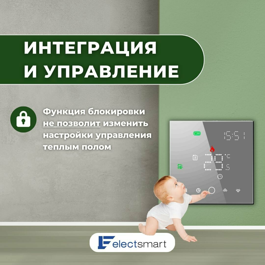 EST-210-YM Терморегулятор для теплого электрического и водяного пола, универсальный термостат с датчиком, цвет: белый. Cенсорное управление, 3500 Вт, ELECTSMART
