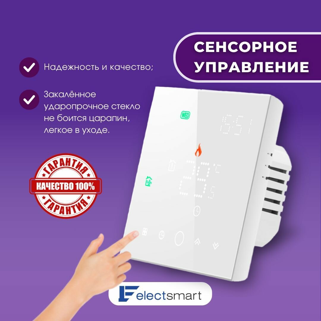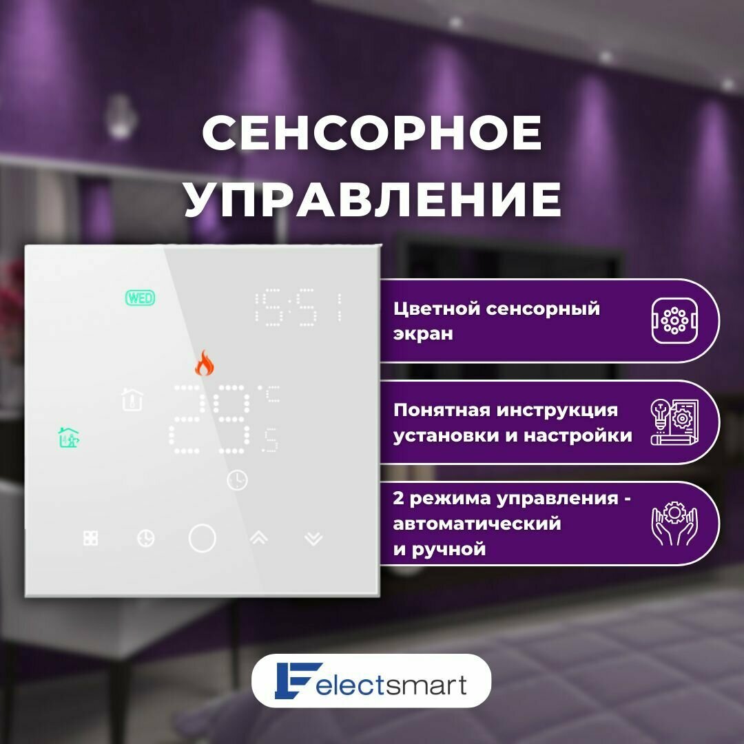 EST-210-YM Терморегулятор для теплого электрического и водяного пола, универсальный термостат с датчиком, цвет: белый. Cенсорное управление, 3500 Вт, ELECTSMART