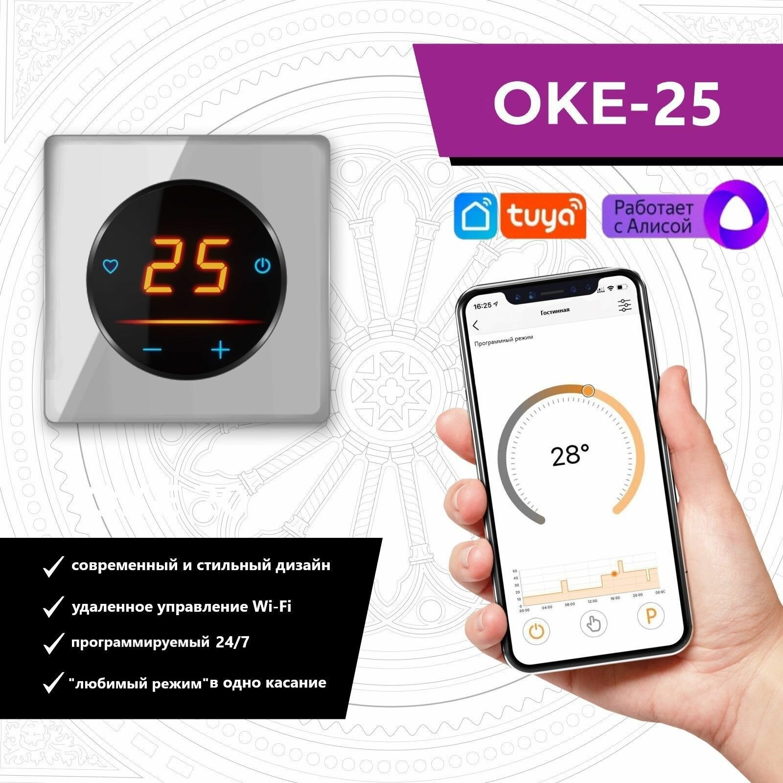 Терморегулятор/термостат для теплого пола OneKeyElectro c WiFi ОКЕ-25 в белой стеклянной рамке