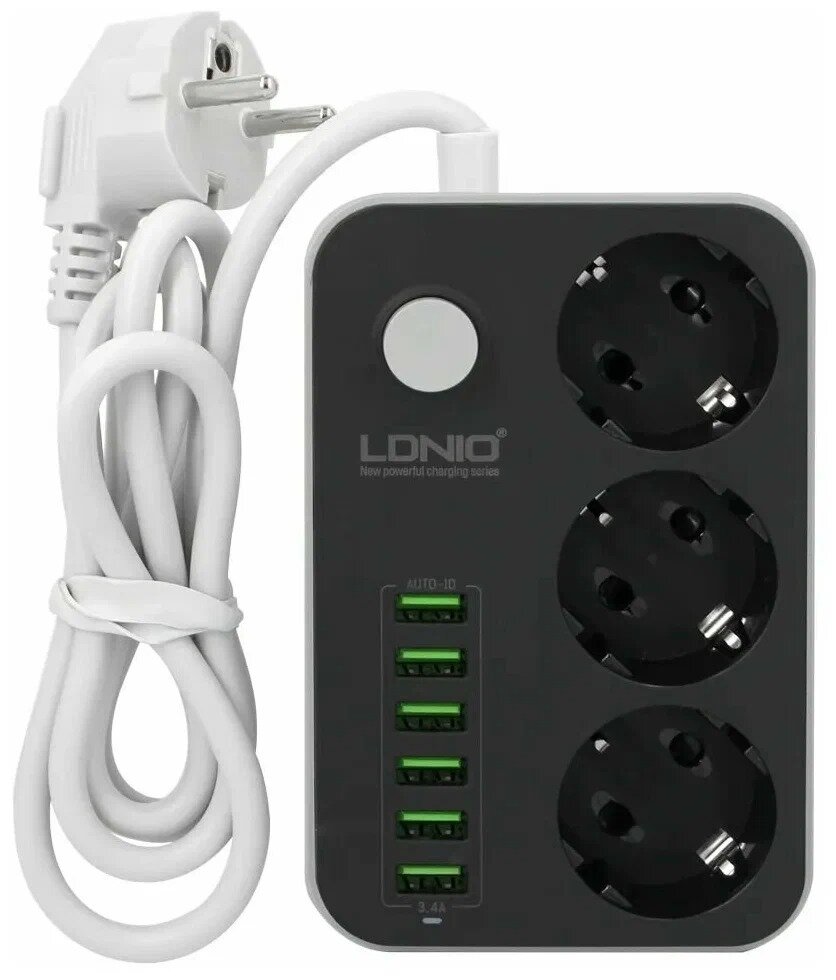 Купить Сетевой фильтр удлинитель на 3 розетки и 6 USB портов с кнопкой включения 1.8 метра
