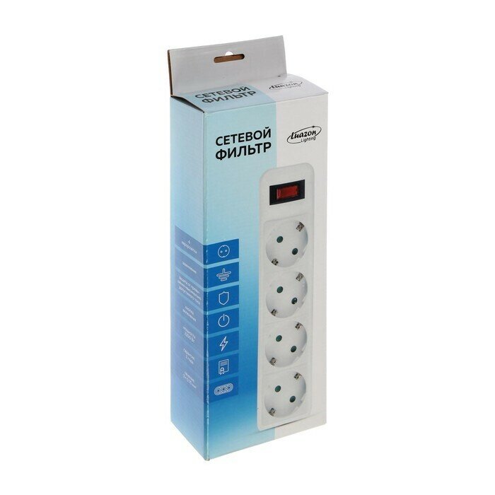 Сетевой фильтр Luazon Lighting, 4 розетки, 1.0 м, 2200 Вт, 3 х 0.75 мм2, 10 A, 220 В, белый