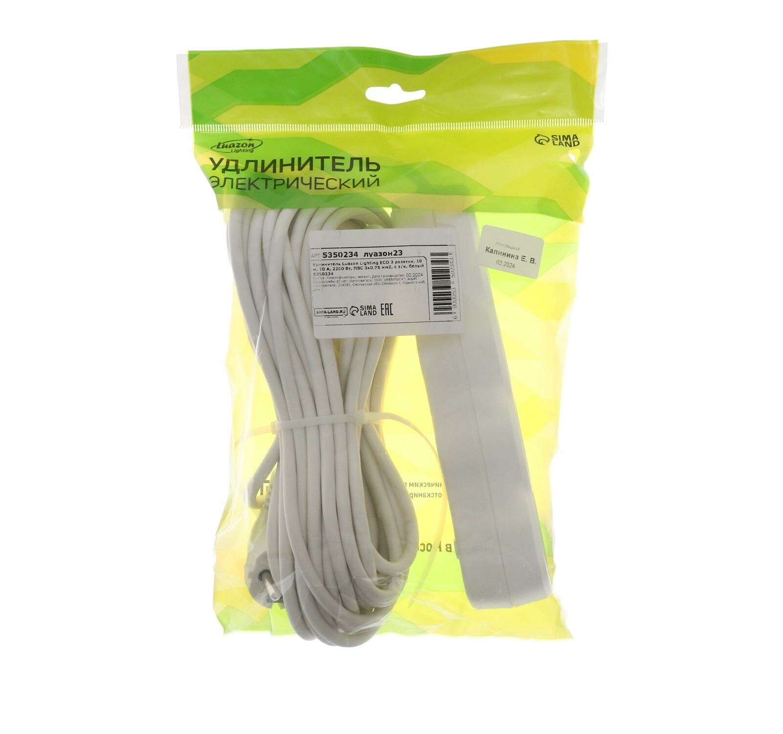 СохранитьLuazon Lighting Удлинитель Luazon Lighting ECO 3 розетки, 10 м, 10 А, 2200 Вт, ПВС 3х0.75 мм2, с з/к, белый интересное: