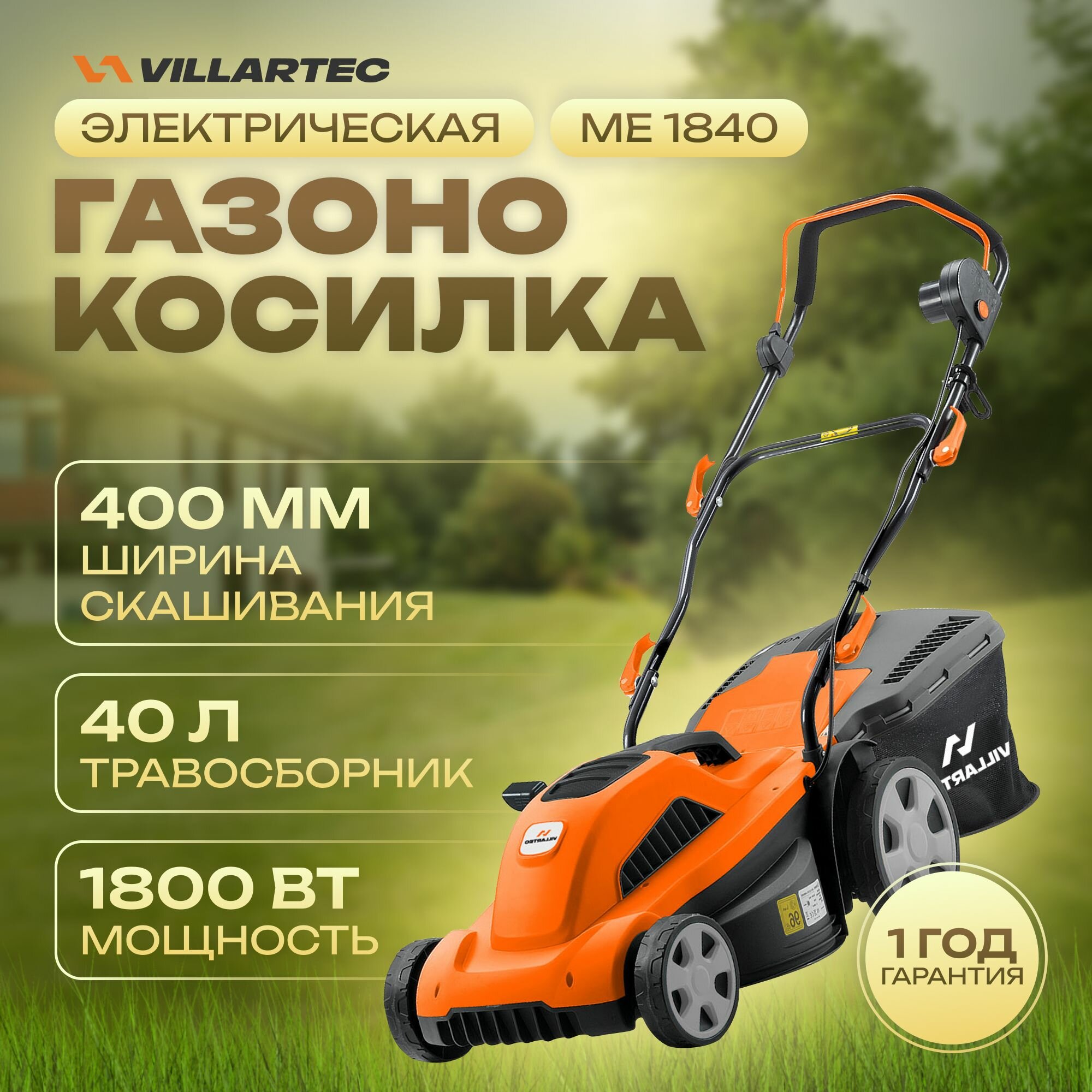 Газонокосилка электрическая VILLARTEC ME1840 / 1800 Вт интересное: