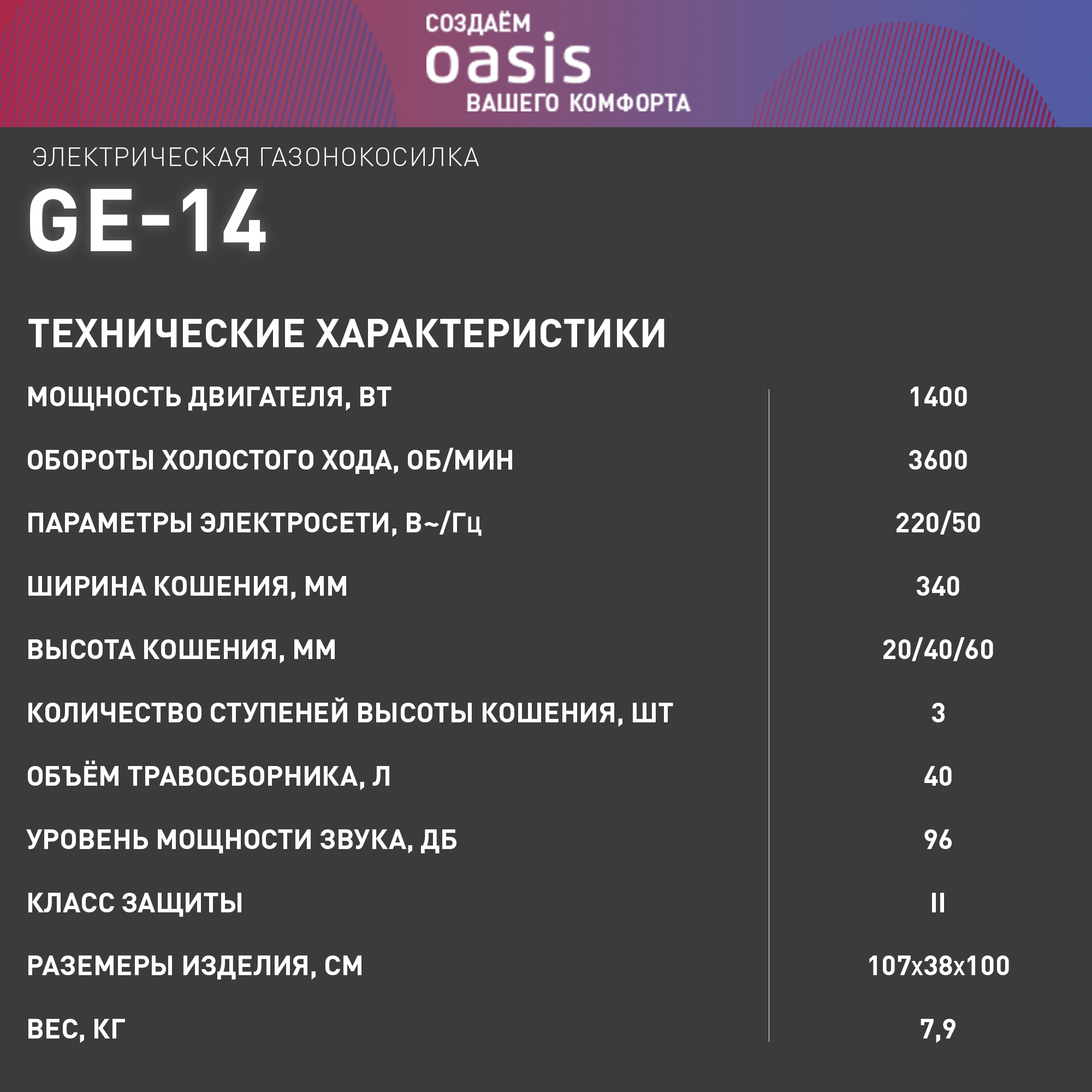 Электрическая газонокосилка Oasis GE-14, 1400 Вт, 32 см, 2021 интересное: