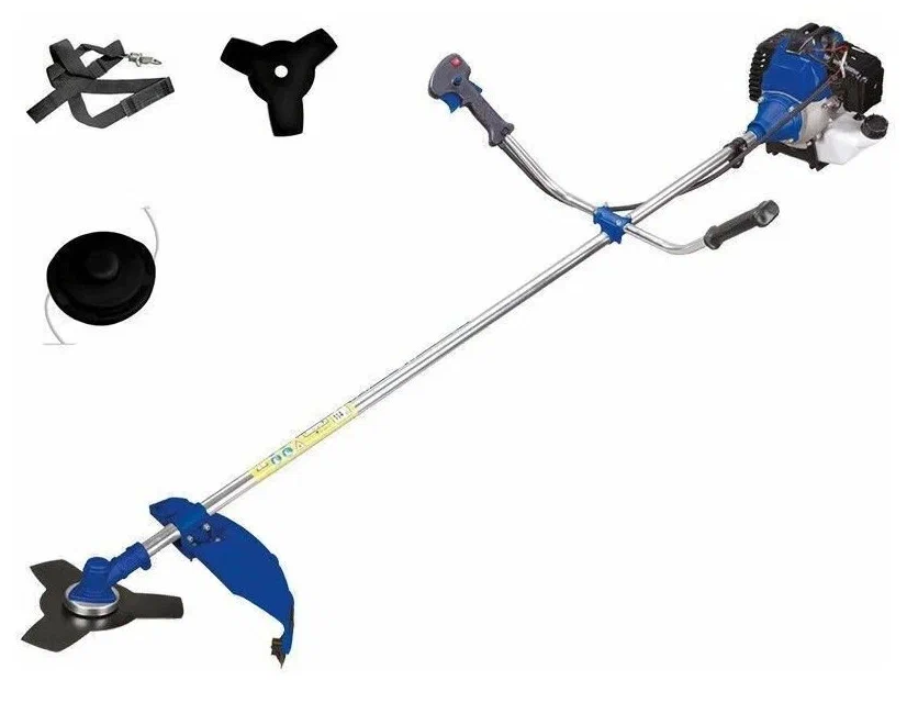 | Подробная комплектация | триммерная шпулька с леской -1шт; 3 х-лопастнойТриммер, стальной нож -1 шт., пластиковая ёмкость для смешивания топлива; наплечный ремень; инструменты для сборки, крепеж. |