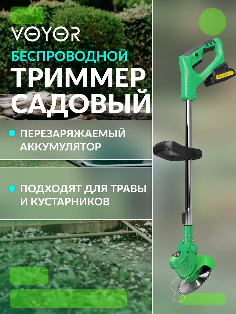 Триммер VOYOR 1029, аккумуляторный, 650 Вт, ширина скашивания 15см, с зарядкой