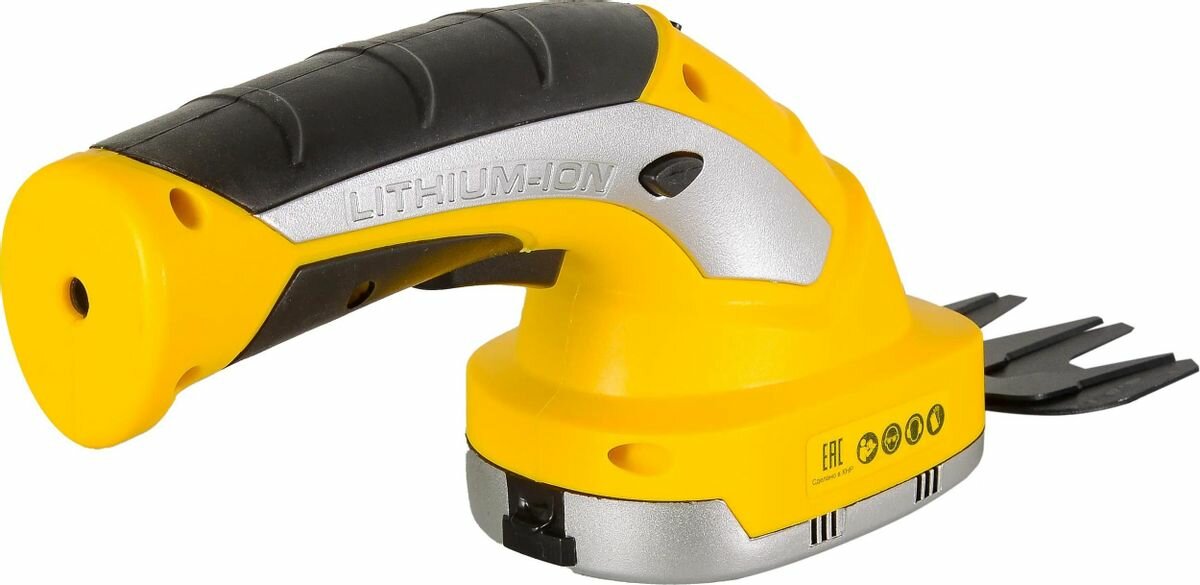 | Комплектация | Модель-GET-120 Тип электропитания-от аккумулятора Емкость аккумулятора-1.5 Ач Напряжение аккумулятора-3.6 В Тип аккумулятора-Li-Ion Смена ножей без инструмента-есть Комплект ножниц для травы и кустов-есть Не требует постоянного подключения к сети Работает в двух режимах: стрижка кустов и подрезание травы; Замена лезвий без специального инструмента. Малый вес и простая конструкция. Вес товара-0.995 кг Триммер-кусторез в сборе Аккумулятор; Зарядное устройство; Лезвие для работы в режиме кустореза; Лезвие для работы в режиме стрижки газона; Руководство по эксплуатации Аккумулятор в комплекте-есть Зарядное устройство в комплекте-есть |