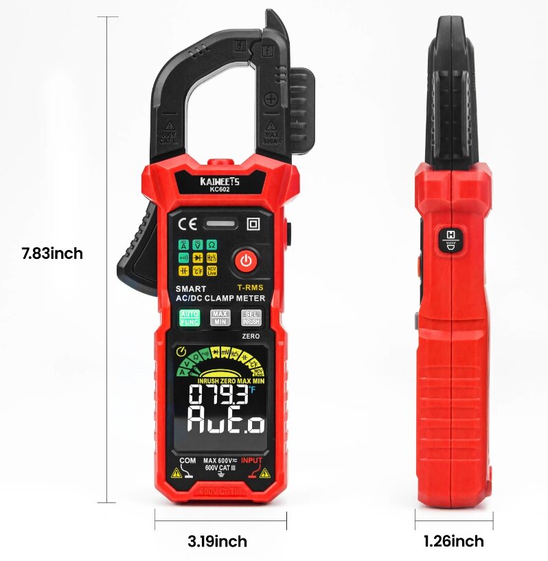 Купить Профессиональные токовые цифровые клещи KAIWEETS KC602 True RMS до 600 А. 20 функций.