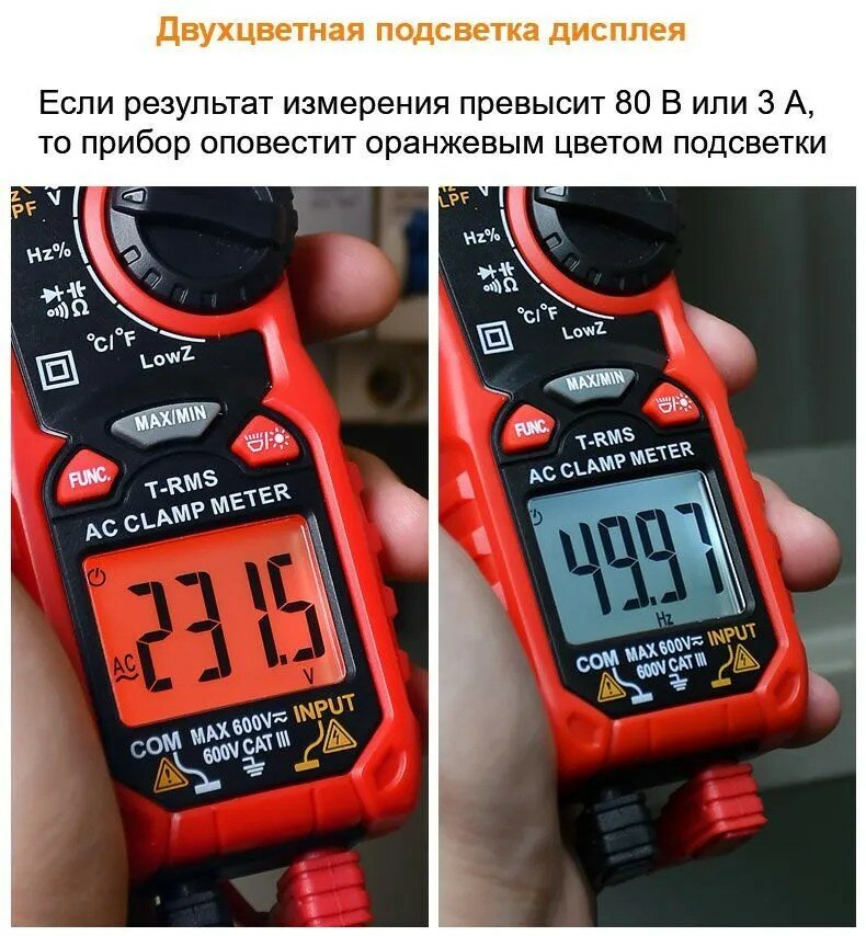 HABOTEST HT206D Мультиметр-токоизмерительные клещи (True RMS, AC/DC, NCV, питание AAA, подсветка, фонарик) интересное: