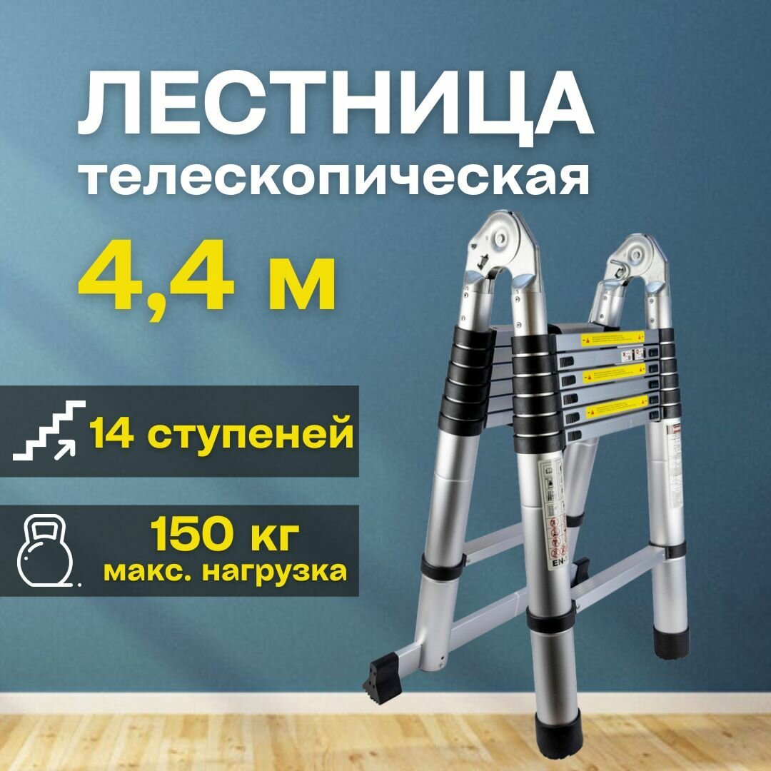 Лестница-стремянка телескопическая алюминиевая 2 секции, 4.4м. интересное: