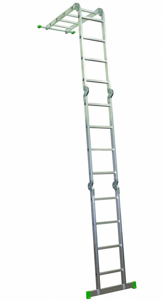 Новая высота Лестница-трансформер 3-х секционная 3×7 ступеней, 3×1,9 м, высота 4,5 м, нагрузка 150 кг, алюминий, новая высота
