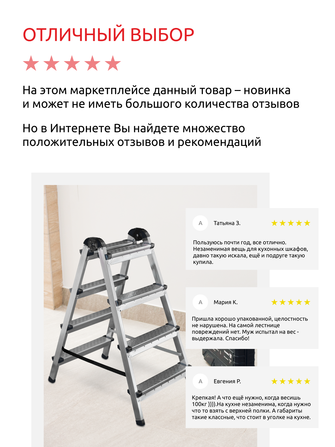 | Отзыв: | Брала себе, т.к. у меня маленький рост. Даже котикам понравилась! А они у меня еще те любители лазать по стремянкам ? |